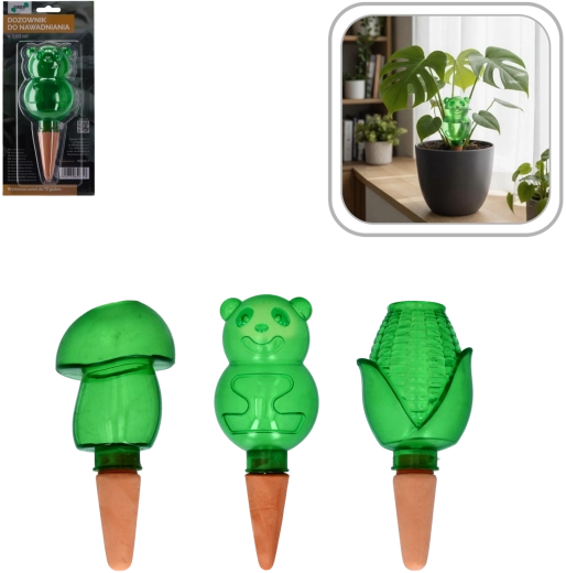 Vælg form som bamse, majskolbe eller svamp og giv dine planter et legende udtryk, der samtidig udfører den praktiske vandingsfunktion.