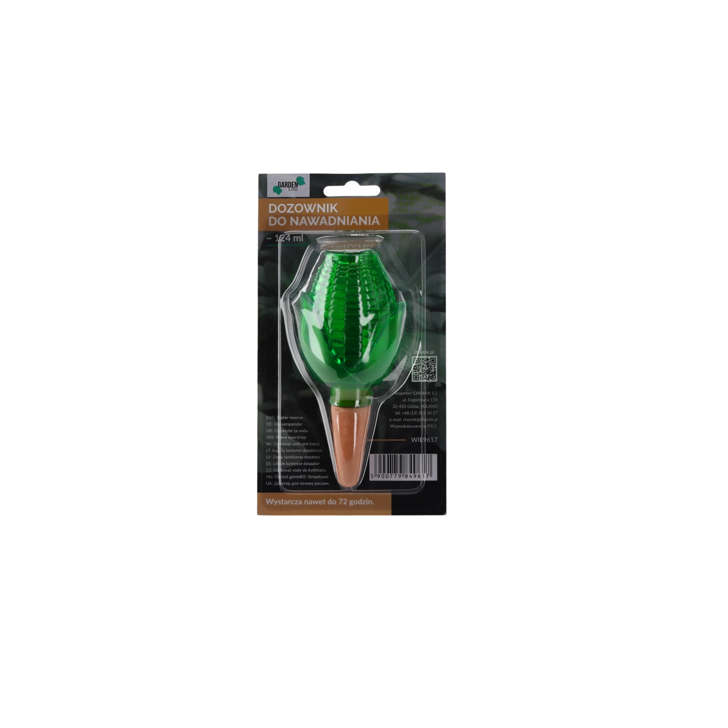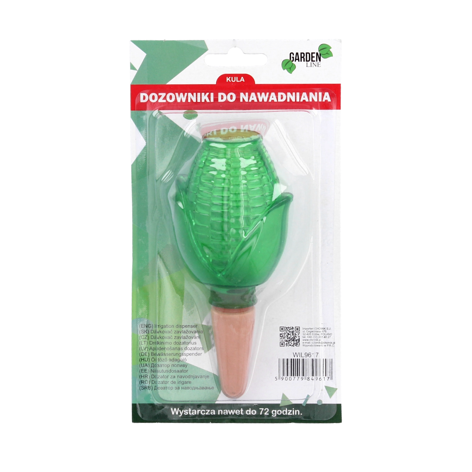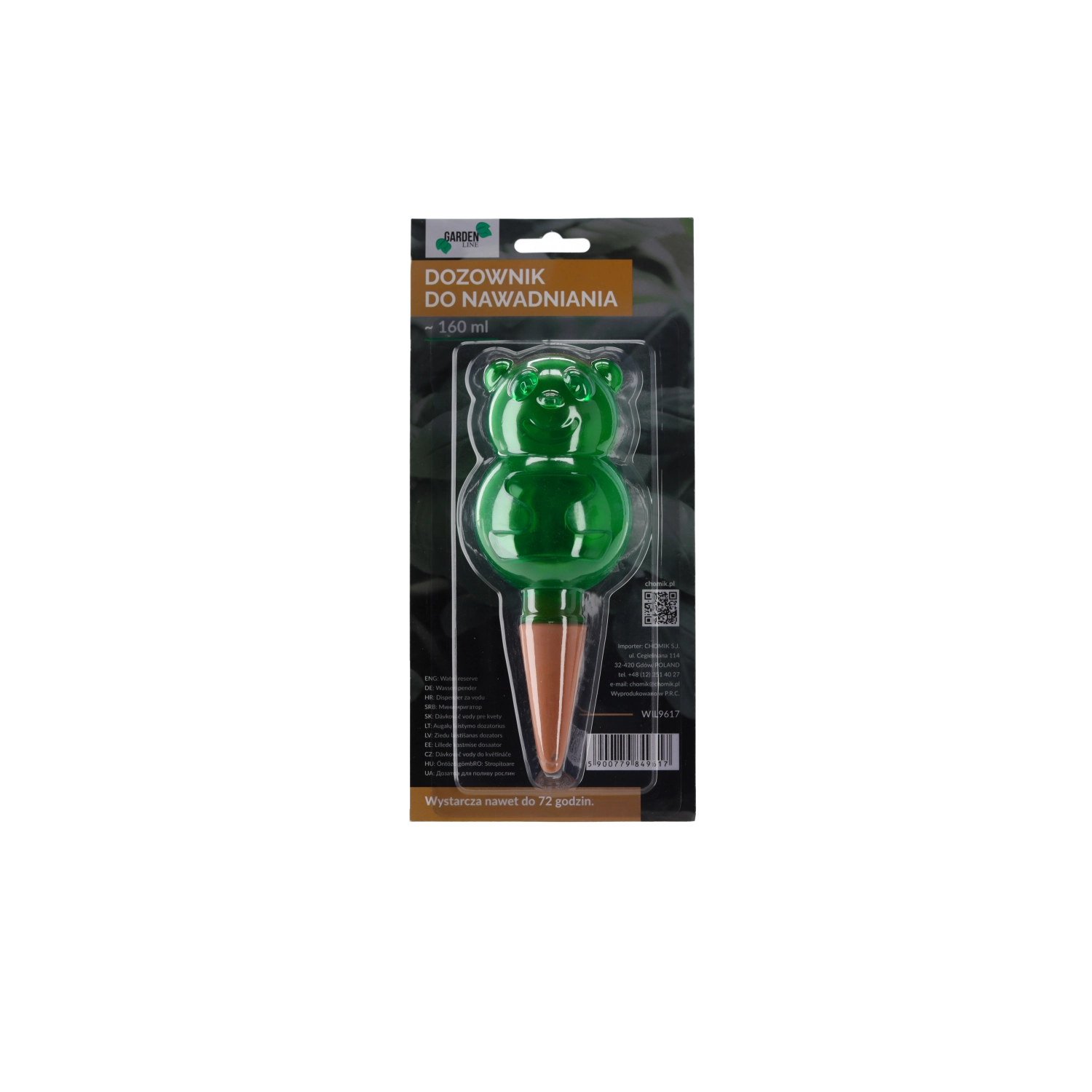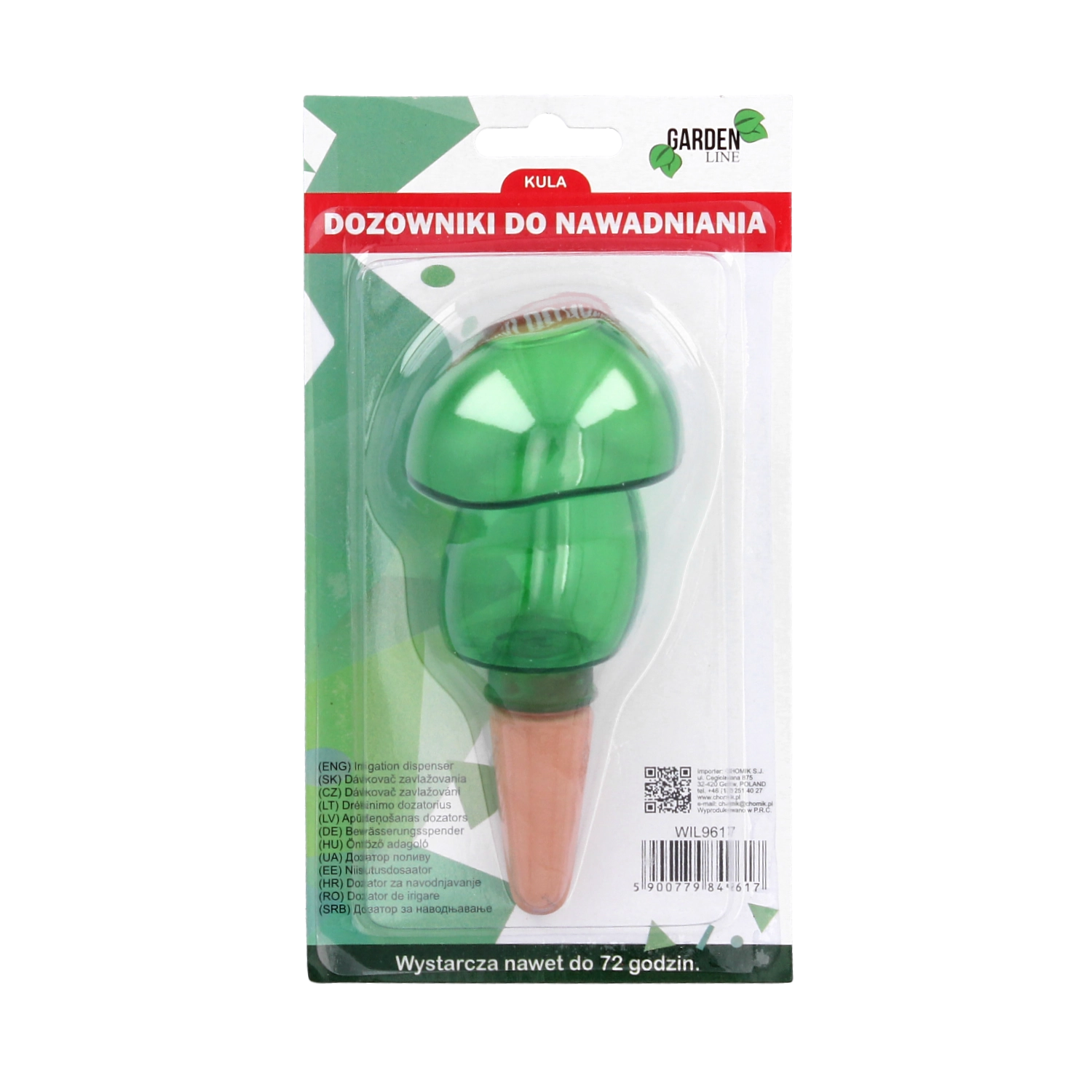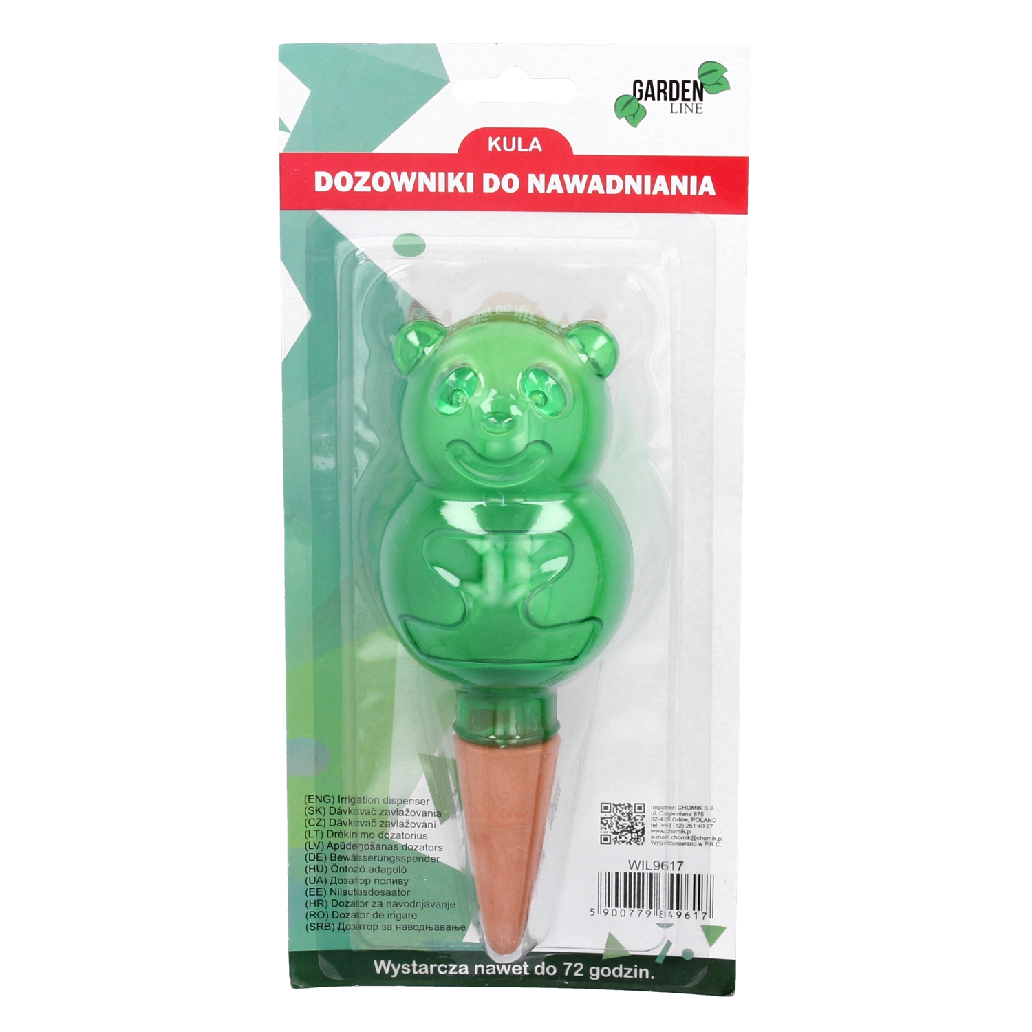 Den praktiske, dekorative vanddispenser til stue- og altanplanter sikrer deres regelmæssige vanding i op til 72 timer, mens du er væk. Det elegante design i form af en bamse, majskolbe eller svamp giver krukkerne et pift og sørger samtidig for langsom frigivelse af vand direkte til rødderne. Nem at bruge, med et gennemsigtigt hus til niveaukontrol og forskellige volumener til forskellige plante størrelser.