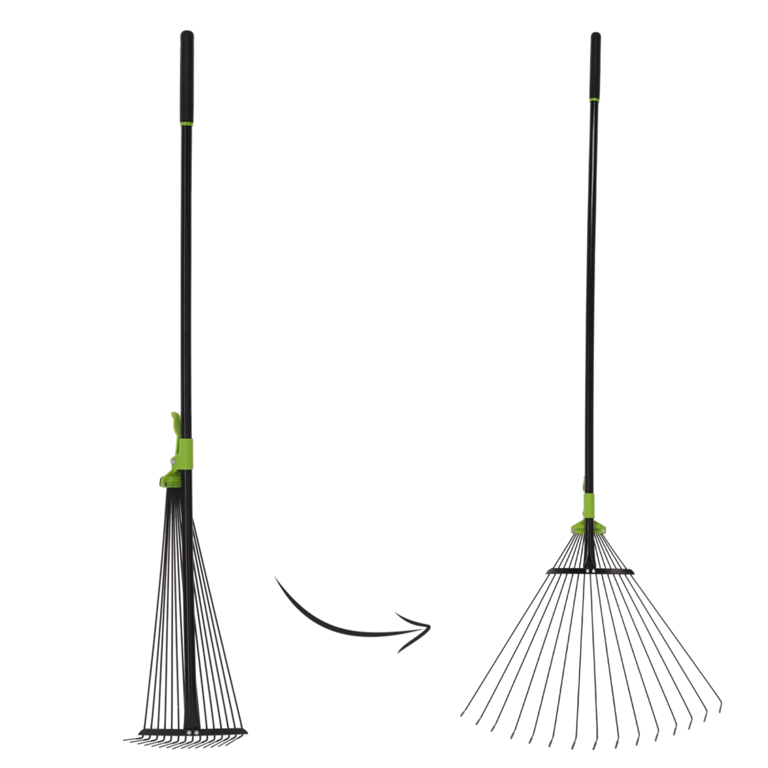 Skab orden i haven hurtigere og mere bekvemt. Denne justerbare rive tilpasser sig både din højde og det område, du arbejder i – fra smalle hjørner til brede flader. Teleskopskaft og sammenklappeligt/udtrækkeligt hoved sparer tid, plads og ryggen.