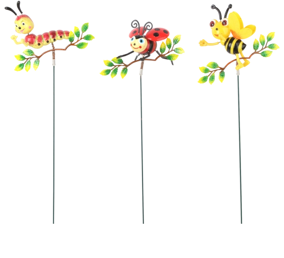 Takket være den lange pind kan du nemt og sikkert placere den i jord eller substrat. Vælg mellem de populære motiver – larve, mariehøne eller bi på gren – og tilpas dekorationen til planter eller sæson.