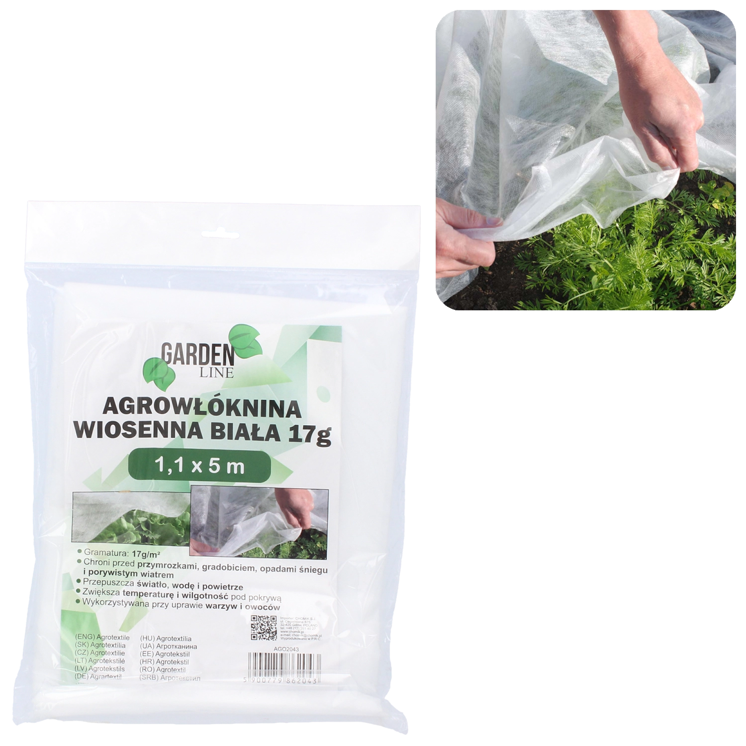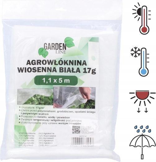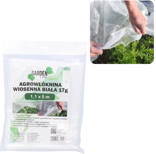 Praktisk hvid fiberdug i størrelsen 1,1 × 5 m med en vægt på 17 g/m² er en pålidelig forårsbeskyttelse til unge planter. Dækket øger jordoverfladens temperatur, reducerer fordampning og dæmper vindstød uden at hindre passage af lys og nedbør.
