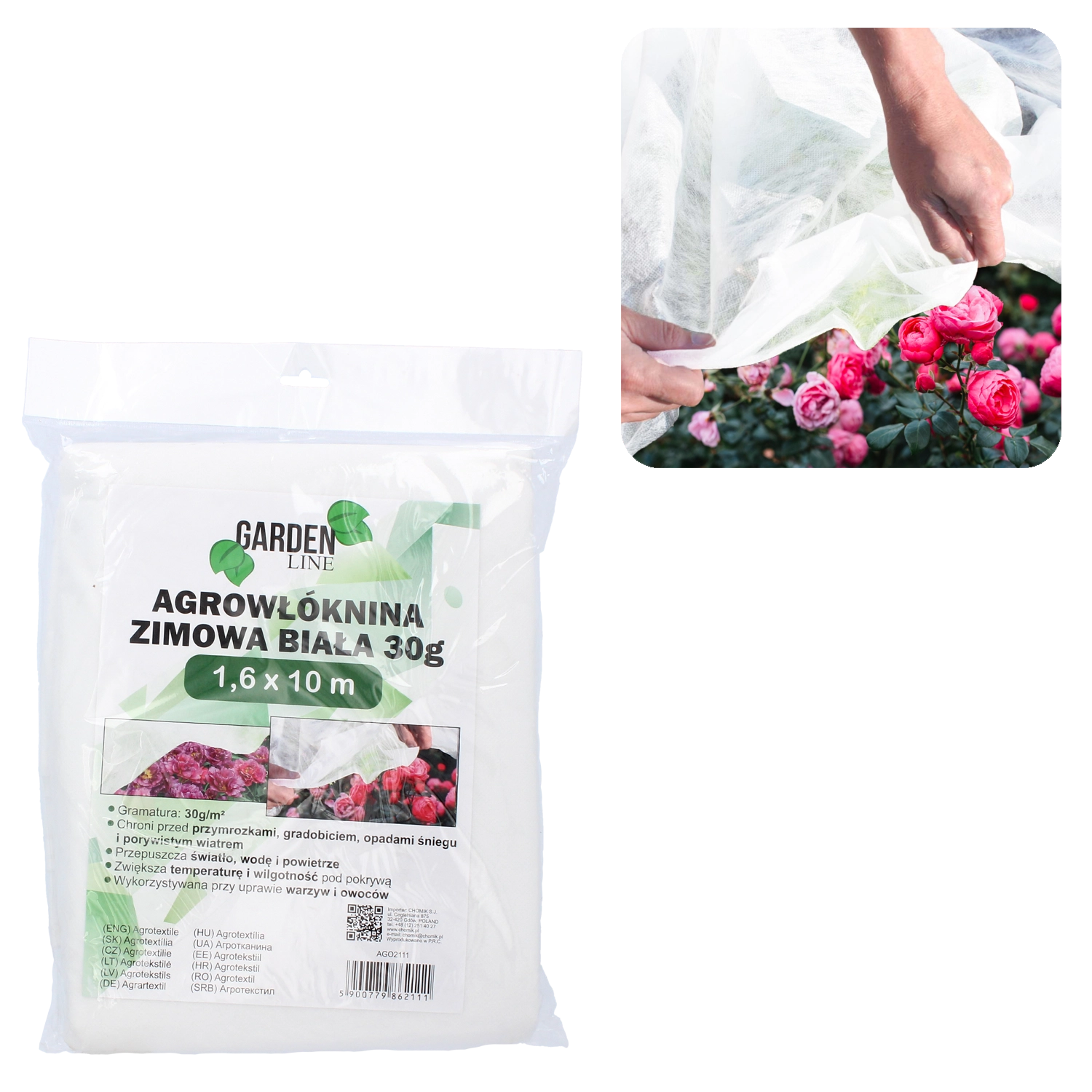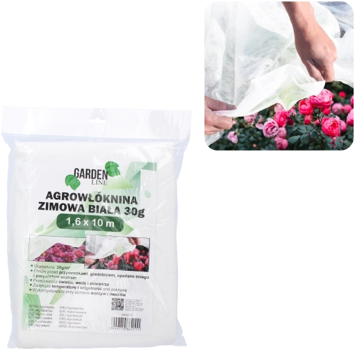 Praktisk agrotextil til vinter- og tidlig forårsbeskyttelse af planter. Beskytter pålideligt mod frost, hagl, sne og vind, samtidig med at det slipper lys, vand og luft igennem. Under dækket skaber det højere temperatur og fugtighed for sund vækst og er UV‑bestandigt.