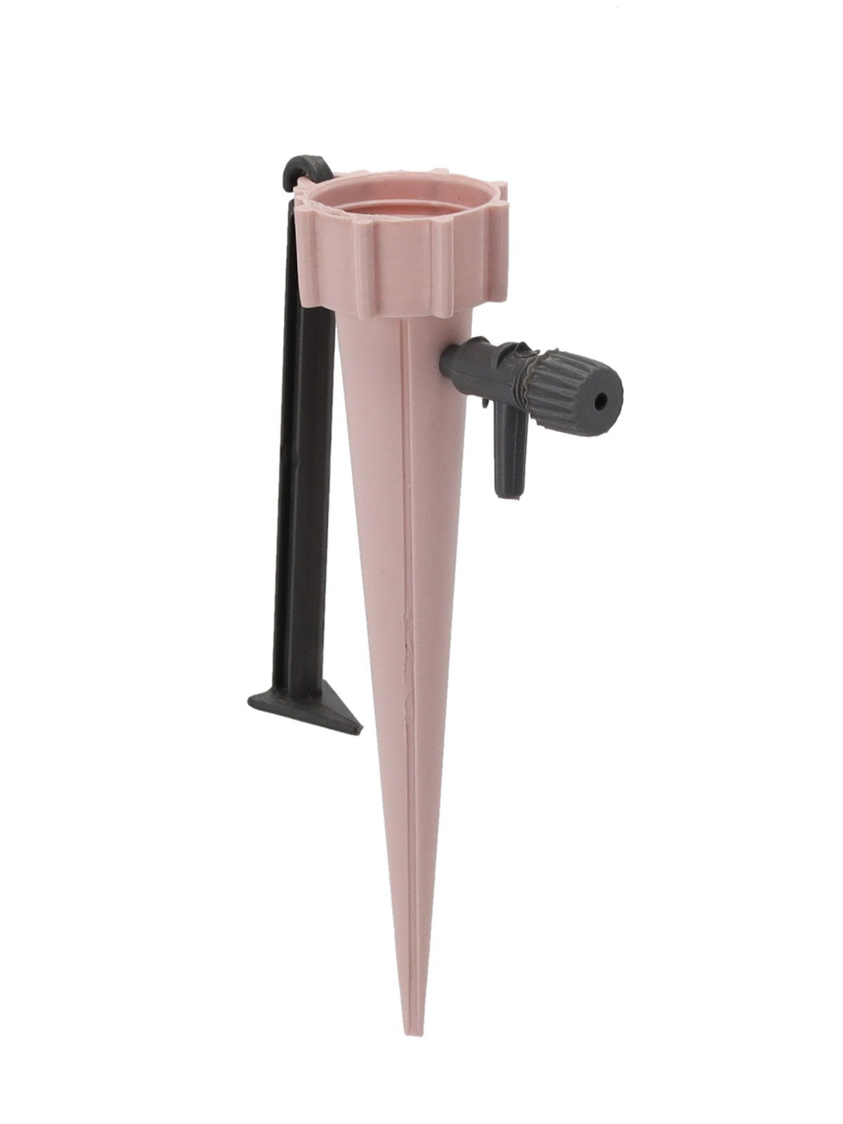 Takket være den nemme installation skal spidsen blot stikkes i jorden, og gennemstrømningen indstilles efter behov. Det holdbare plastmateriale garanterer lang levetid og driftssikker brug både inde og ude. Produktet leveres i et farvemix (pink, mørkegrøn, orange, brun), farvevalg kan ikke påvirkes.