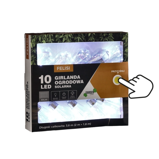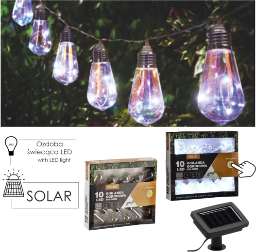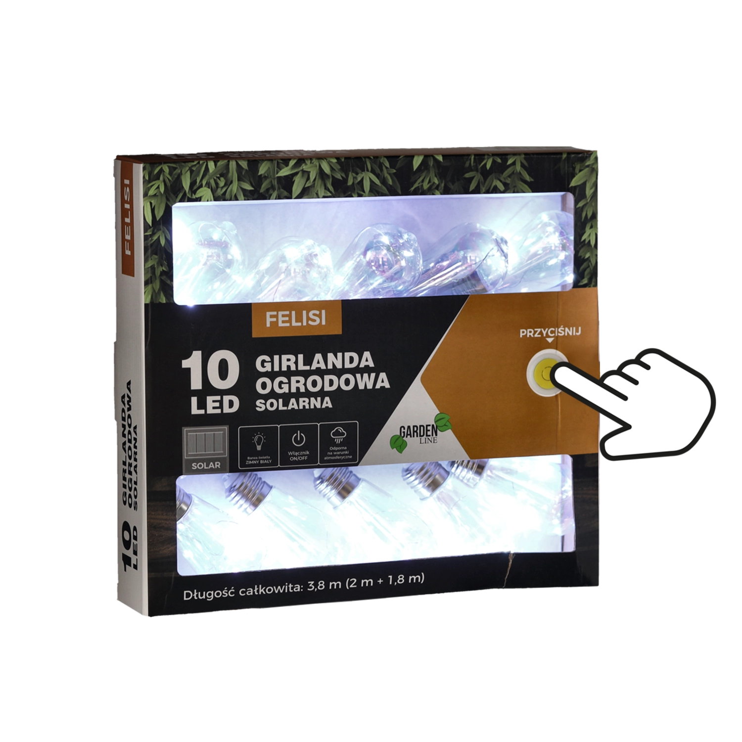 Det indbyggede solcellepanel lagrer energi i løbet af dagen og tænder automatisk kæden efter mørkets frembrud. Det sparer strøm og skåner miljøet og kræver ingen stikkontakt.