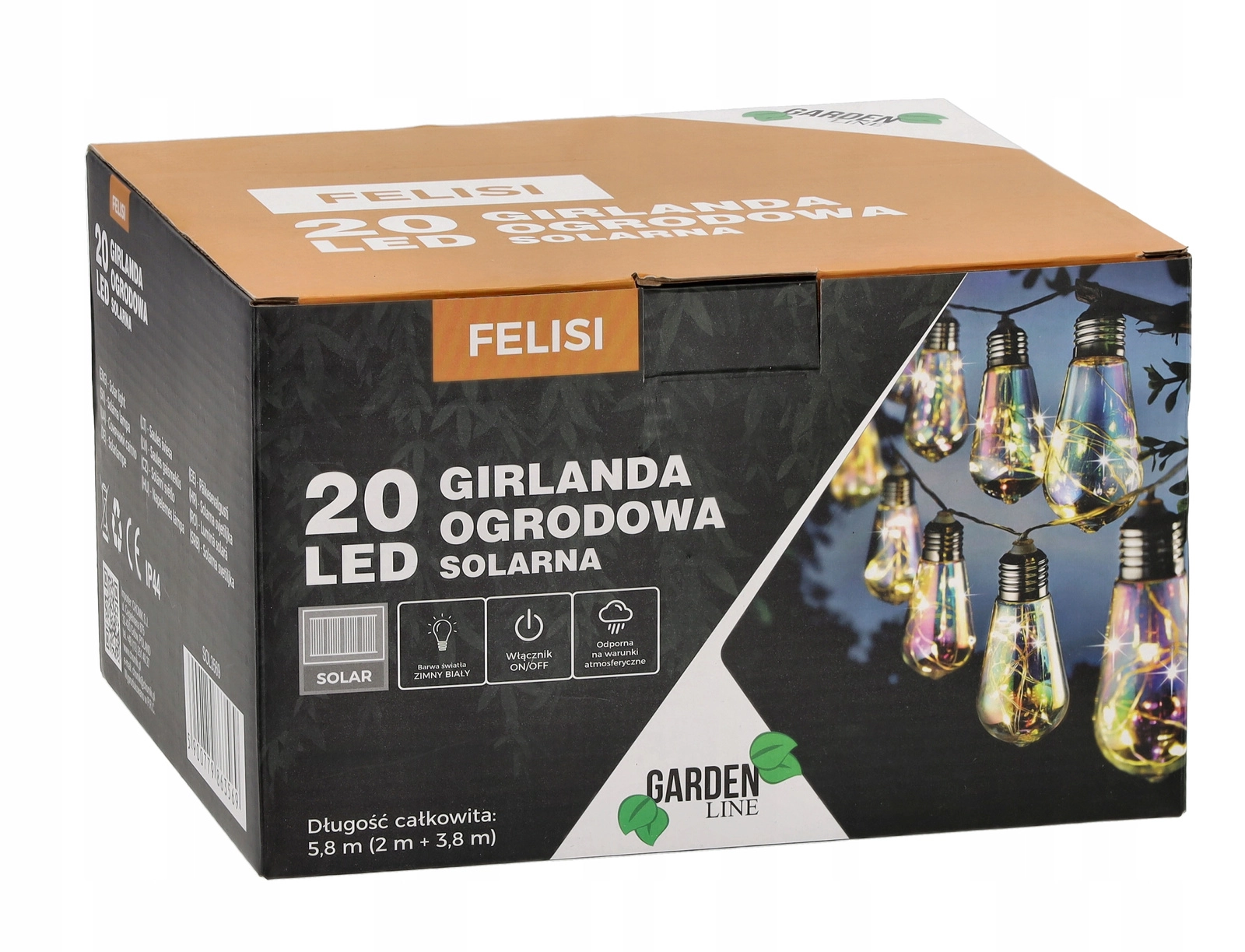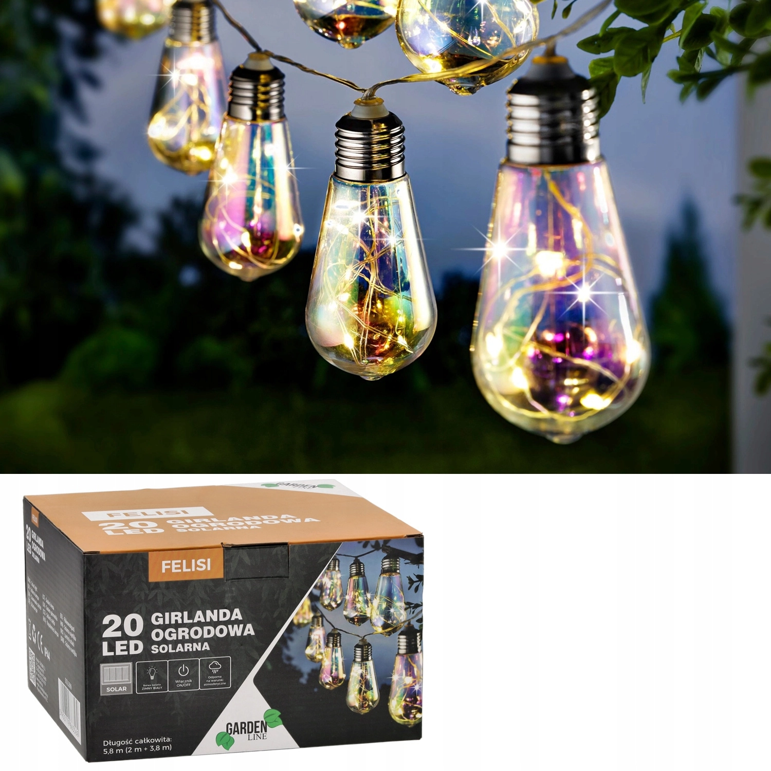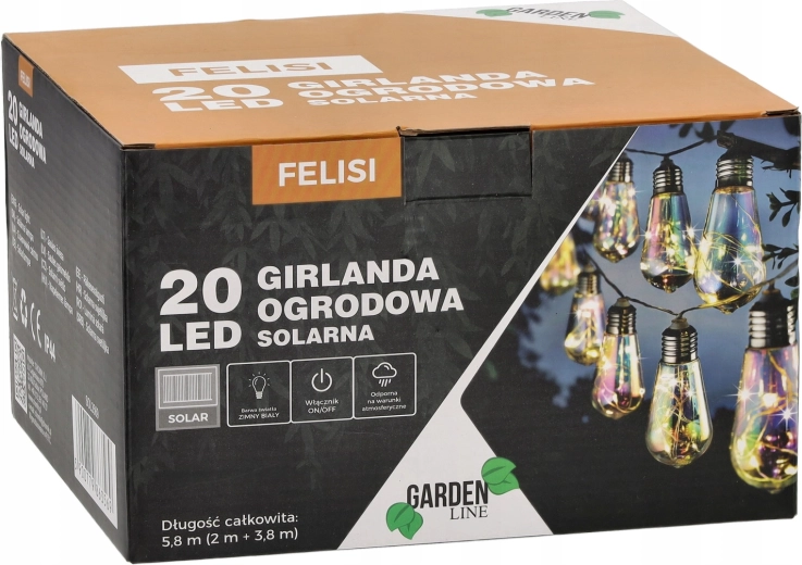 Den stilfulde solcelledrevne lyskæde FELISI forvandler enhver udendørs plads til et hyggeligt sted til aftenstunder. Pærelook med køligt hvidt lys komplementerer både moderne og klassiske dekorationer, mens den fleksible ledning gør det nemt at hænge den på rækværk, grene eller en pergola.