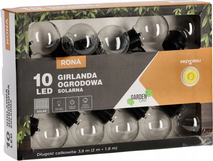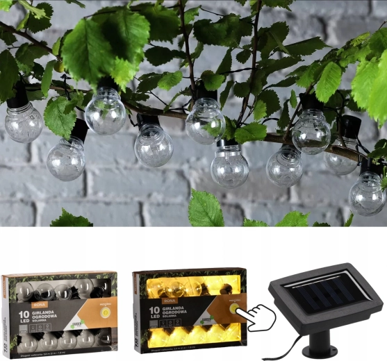 Skab en afslappet stemning i det fri med en solcelleguirlande med 10 klare glødepærer i globusform. Den fleksible kabel og en afstand på 20 cm gør det nemt at hænge den på grene, rækværk eller pergola. Den varmt hvide lysfarve er ideel til aftenstunder, fester og dekoration året rundt.