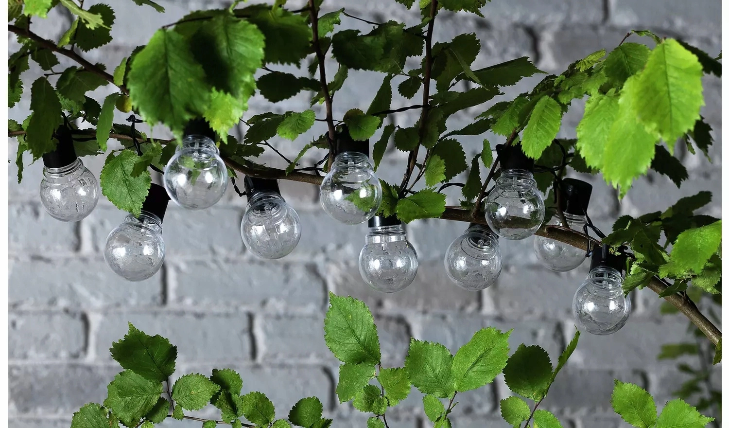 Udendørs design med IP44-beskyttelse tåler regn og fugt. Den fleksible kabel gør det let at fastgøre på grene, hegn eller wirer.