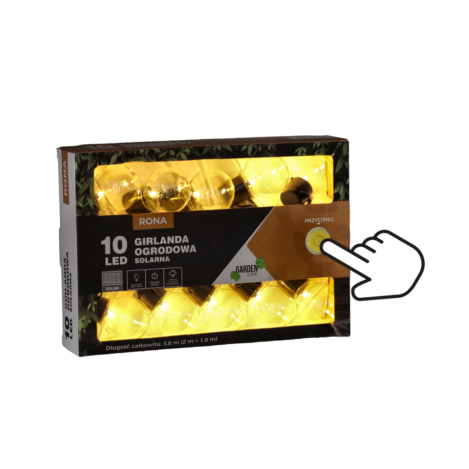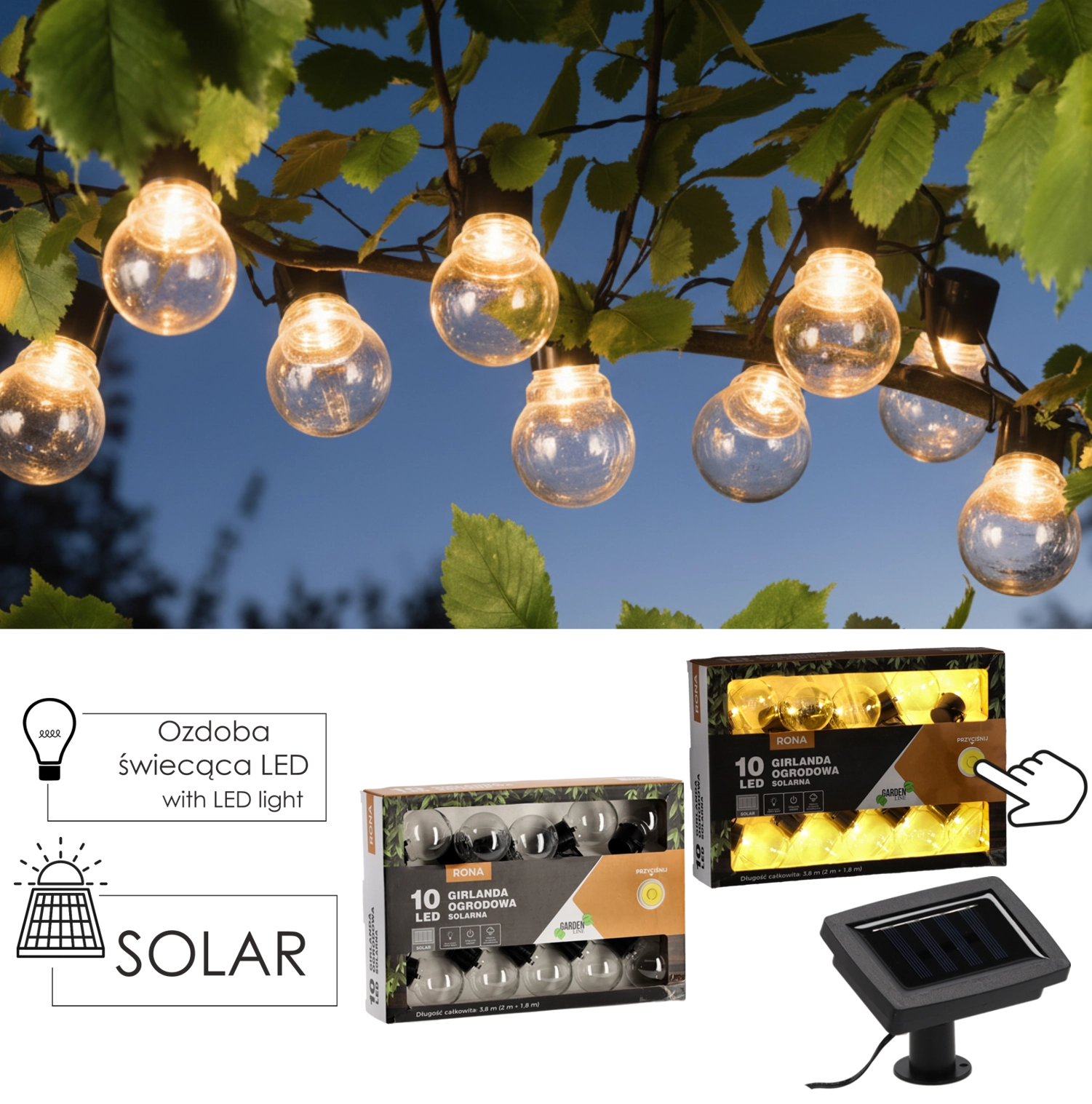 Det indbyggede solcellepanel forsyner guirlanden i løbet af dagen og giver behageligt lys om aftenen. Du sparer både energi og tid – ingen stikkontakter, ingen forlængerledninger.