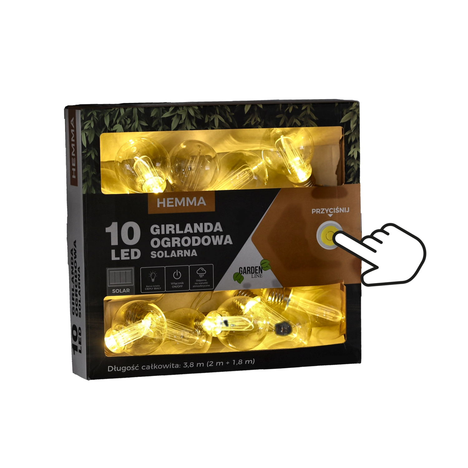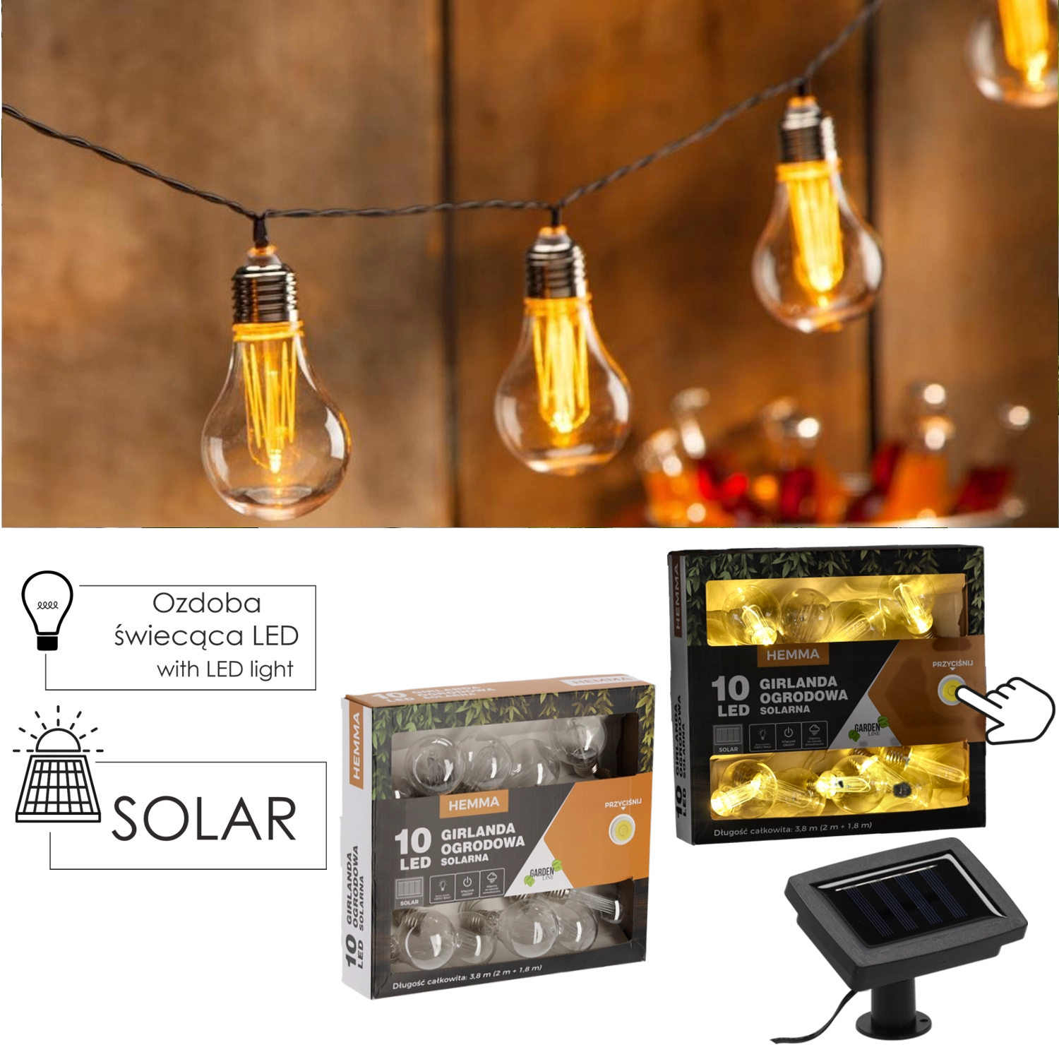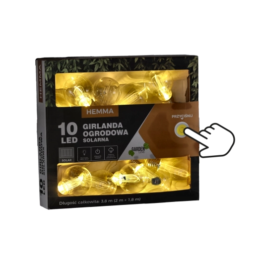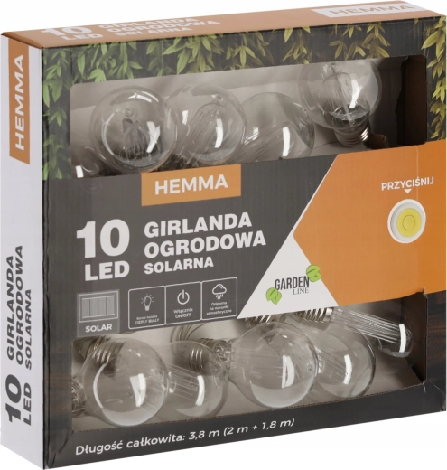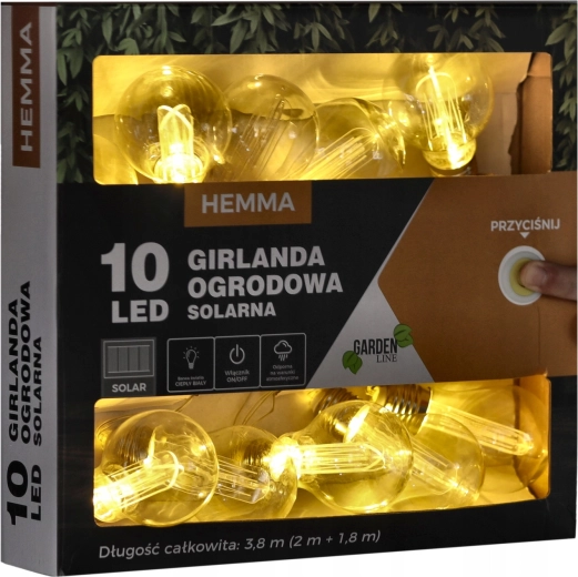 Skab en hyggelig stemning på terrasse eller altan med en solcelledrevet lyskæde på 3,8 m. Den tilbyder 10 LED med varmt hvidt lys, strøm fra solpanel uden kabler, IP44-klassificeret og to lysfunktioner – konstant lys eller blink. Ideel til udendørs hyggehjørner, fester og daglig dekoration.
