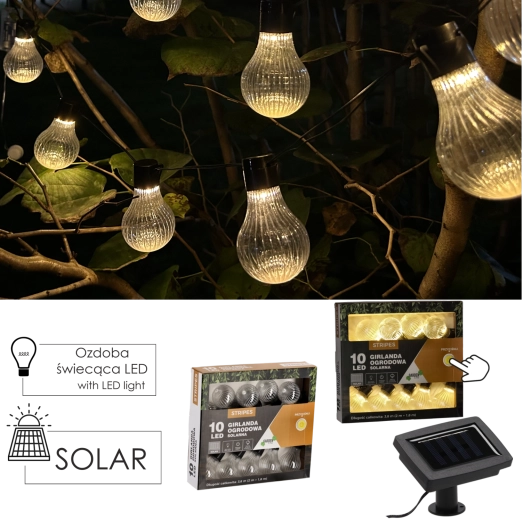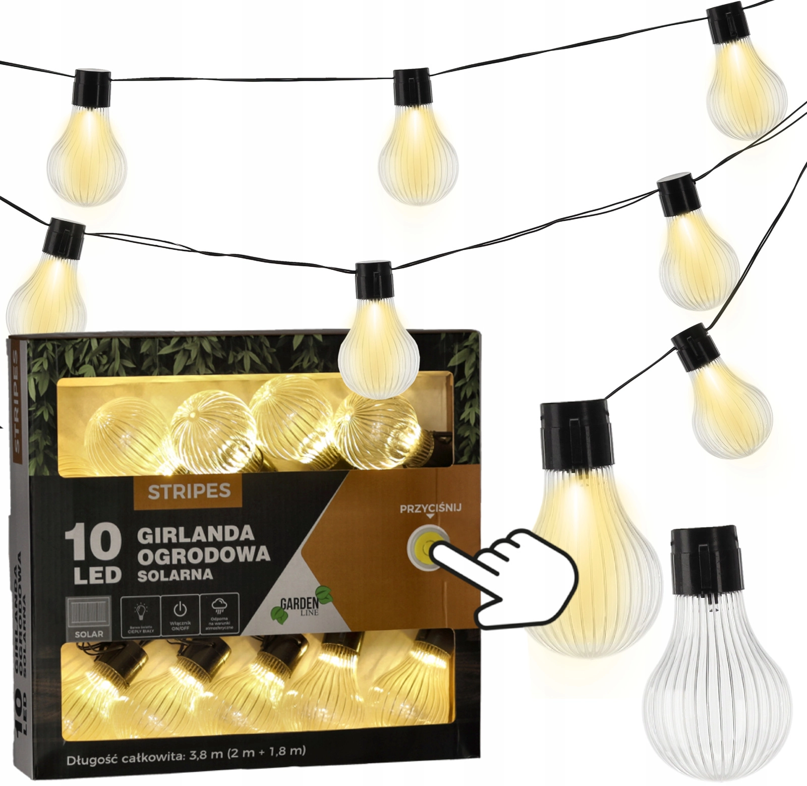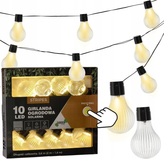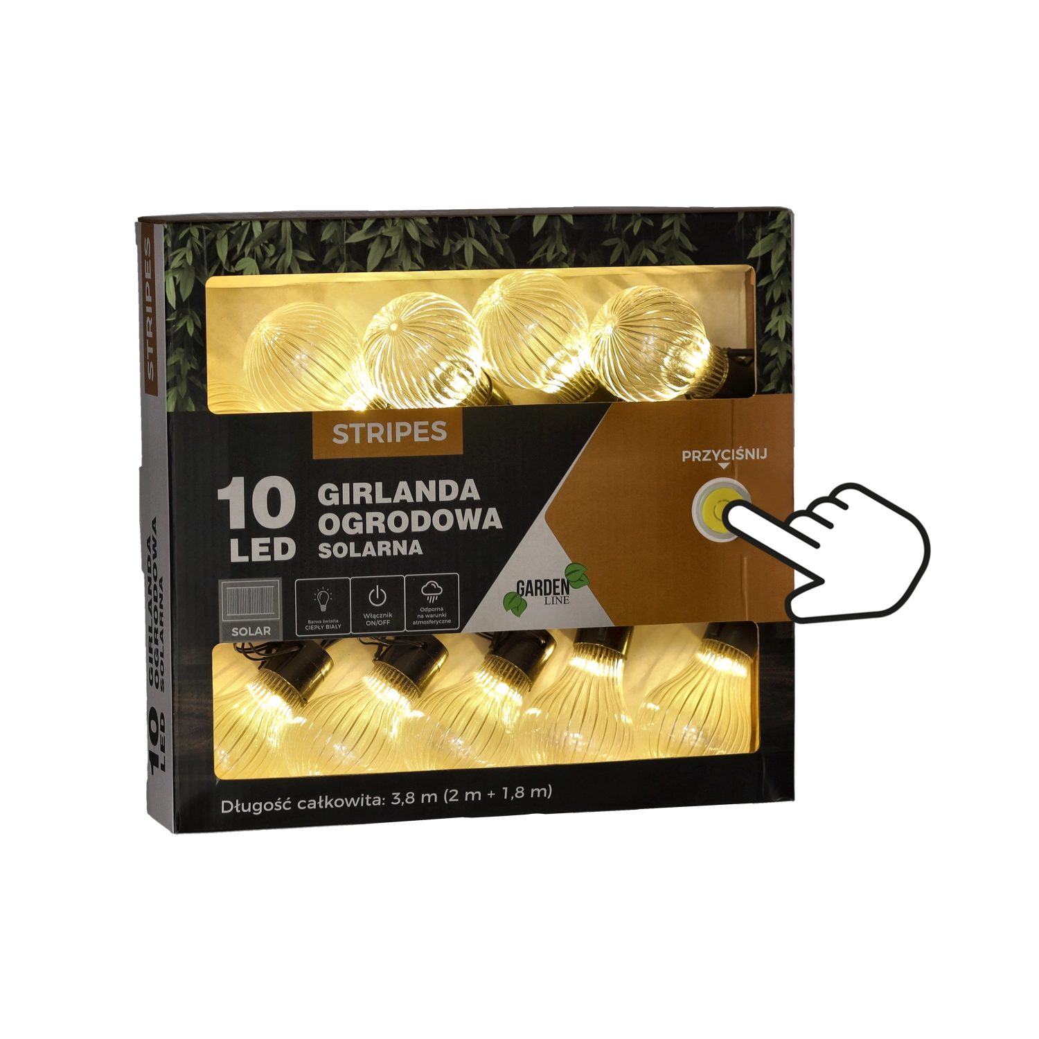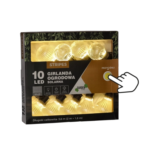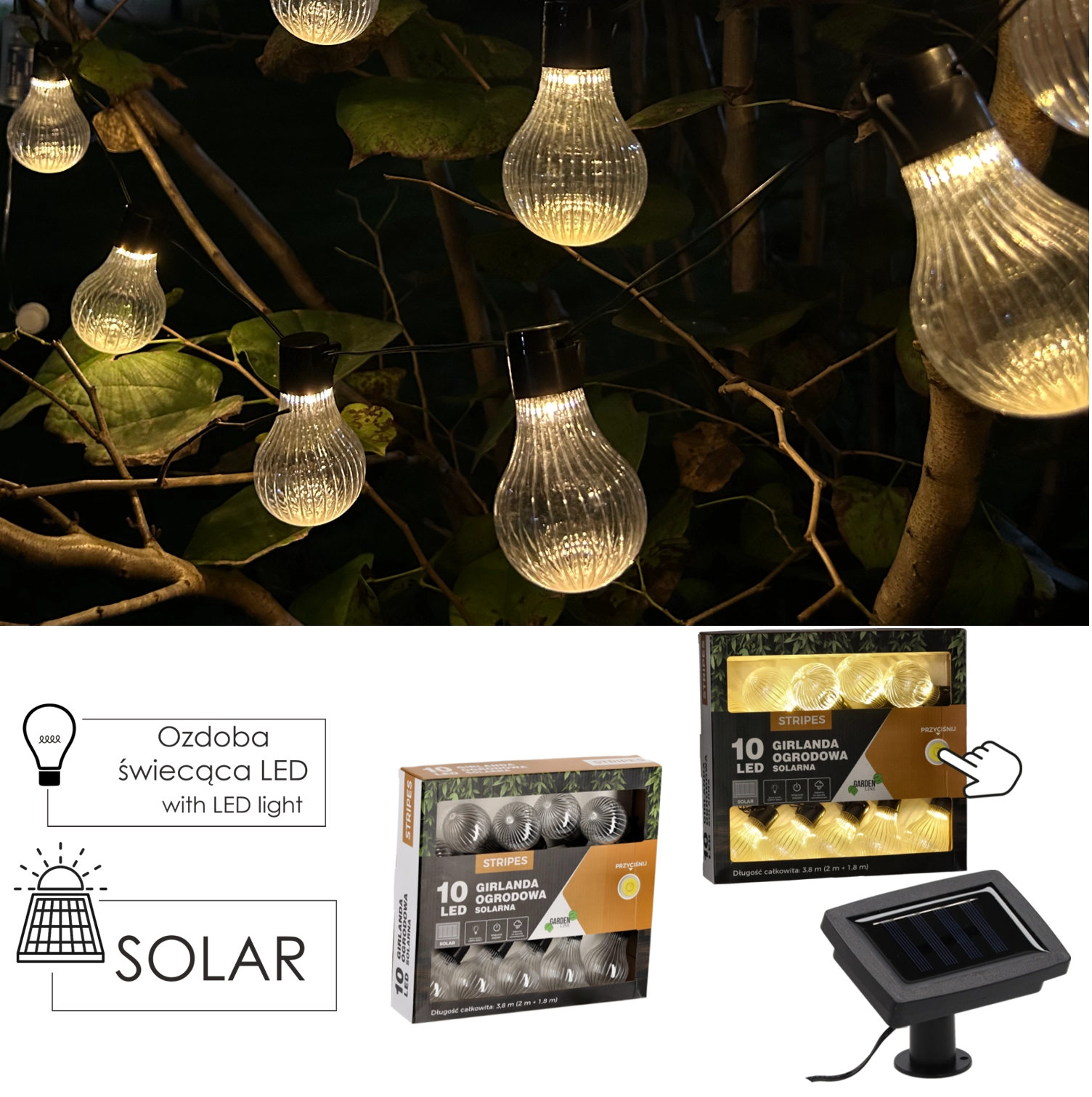 Solcelledrevet udendørs guirlande STRIPES 10 LED varm hvid 3,8 m