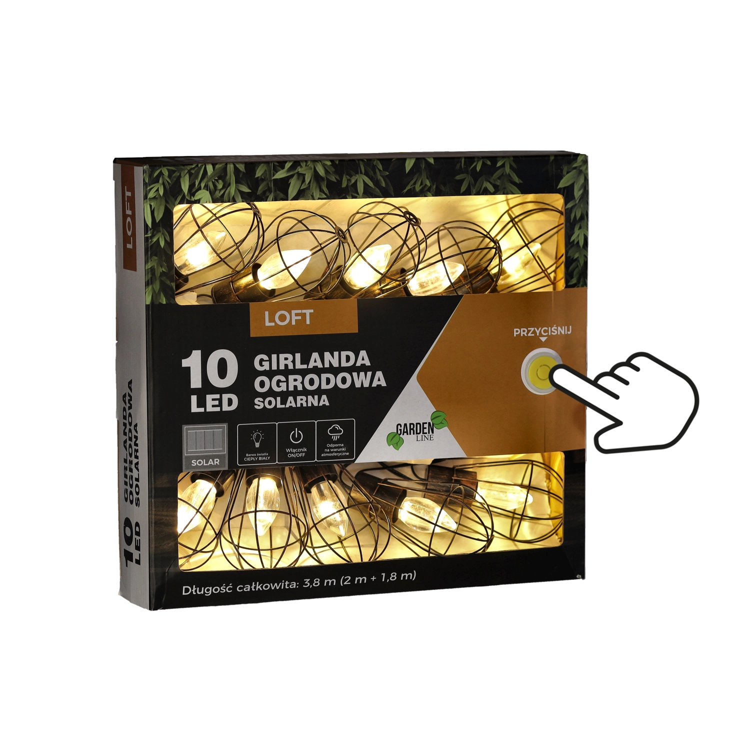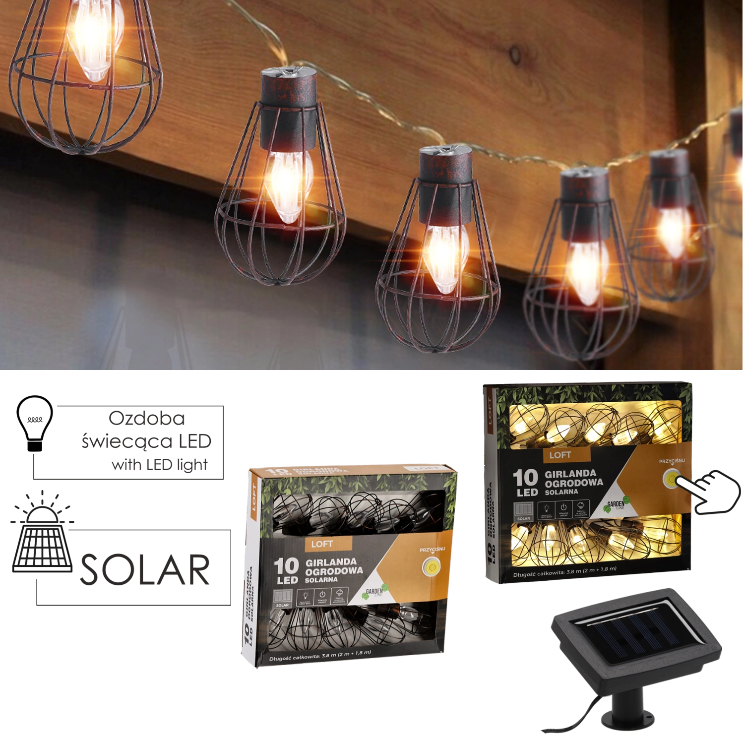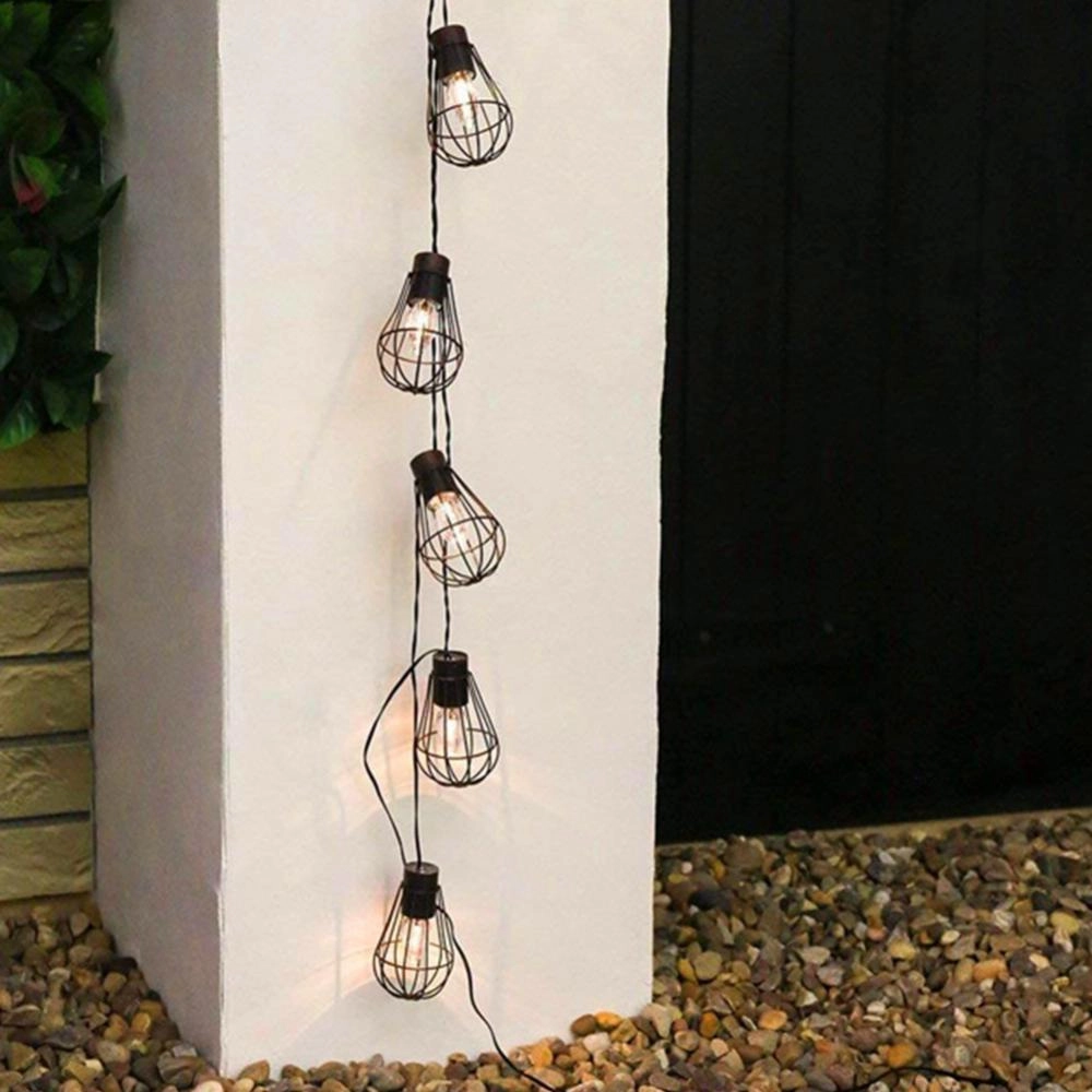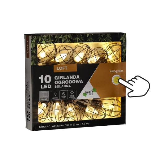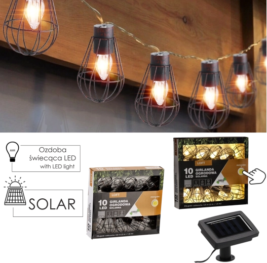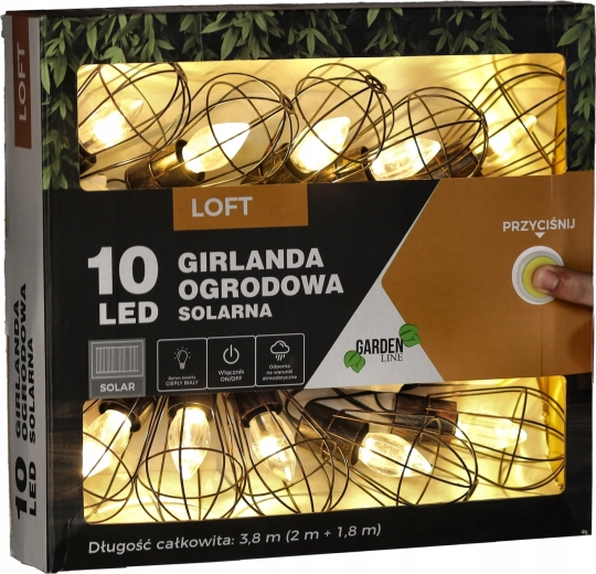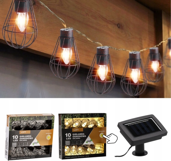 Giv altanen, terrassen og haven en magisk stemning med en solcelledrevet guirlande i industrielt loft-design. 10 LED med varmt hvidt lys lyser i op til 6–7 timer efter opladning, drevet af et solpanel med indbygget batteri, og takket være IP44 tåler den regn og fugt. Den praktiske længde på 3,8 m (2 m tilledning + 1,8 m lyssektion) og 20 cm afstand mellem pærerne sikrer jævn, hyggelig belysning uden behov for stikkontakt.