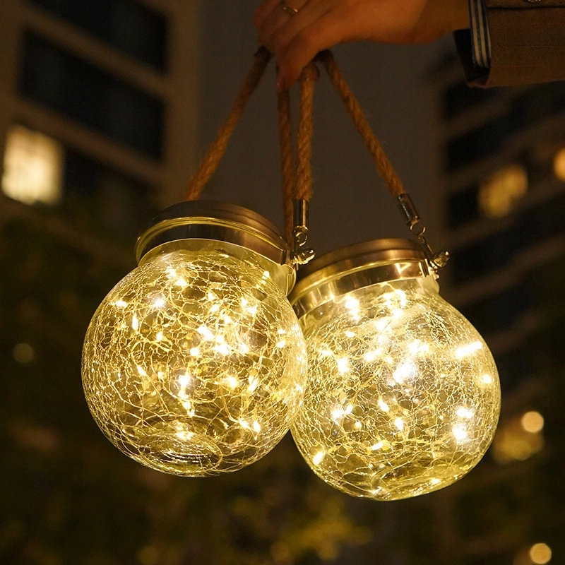 Det krakelerede glas spreder det varme LED-lys smukt og skaber en glitrende effekt, som gør sig godt på terrassen, ved pergolaen og i haven.