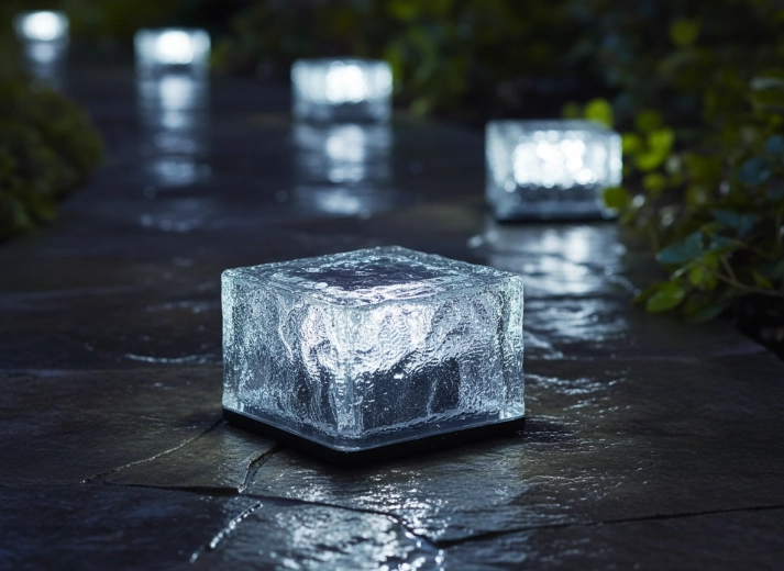 Den elegante solcellelampe i form af en glaskube er ideel til at fremhæve stier, bede, områder omkring damme og terrasser. Glaskrop med tekstur ligner issten og skaber en attraktiv, moderne atmosfære med koldhvidt skær. De kompakte mål 7 × 7 × 5 cm muliggør diskret placering, der ikke forstyrrer om dagen og overrasker med en effektfuld glød om natten.