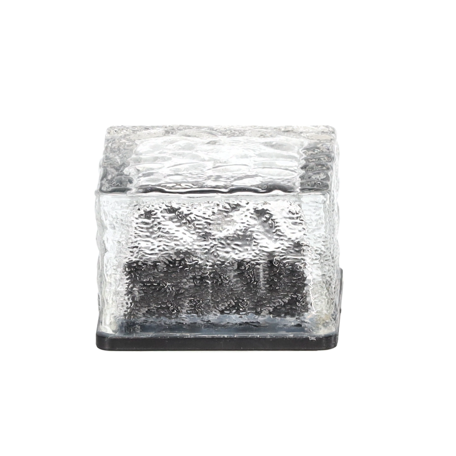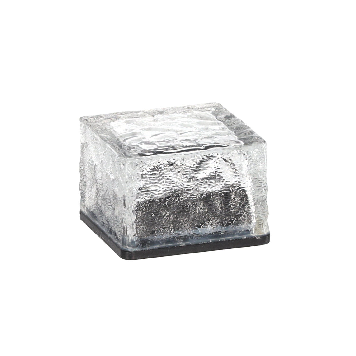 Solcelle havelampe i glas, kube 7 × 7 × 5 cm, kold hvid