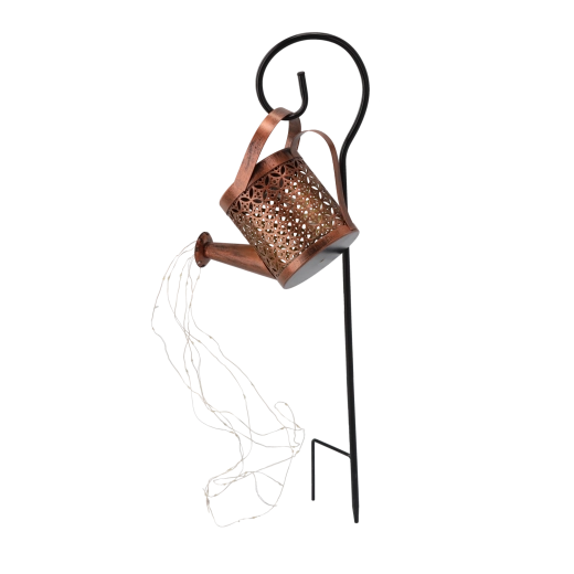 Forvandl din have til et eventyrligt sted. Den hængende solcelledrevne vandkande med LED-dråber skaber en blid lysstrøm, der gør sig godt langs stier, ved siddepladser og mellem planterne. Takket være solcelledrift behøver du hverken stikkontakt eller kabler – blot rigeligt sollys i dagtimerne.