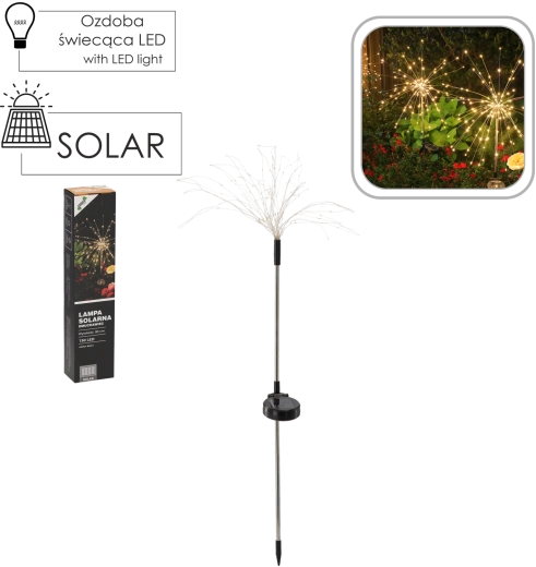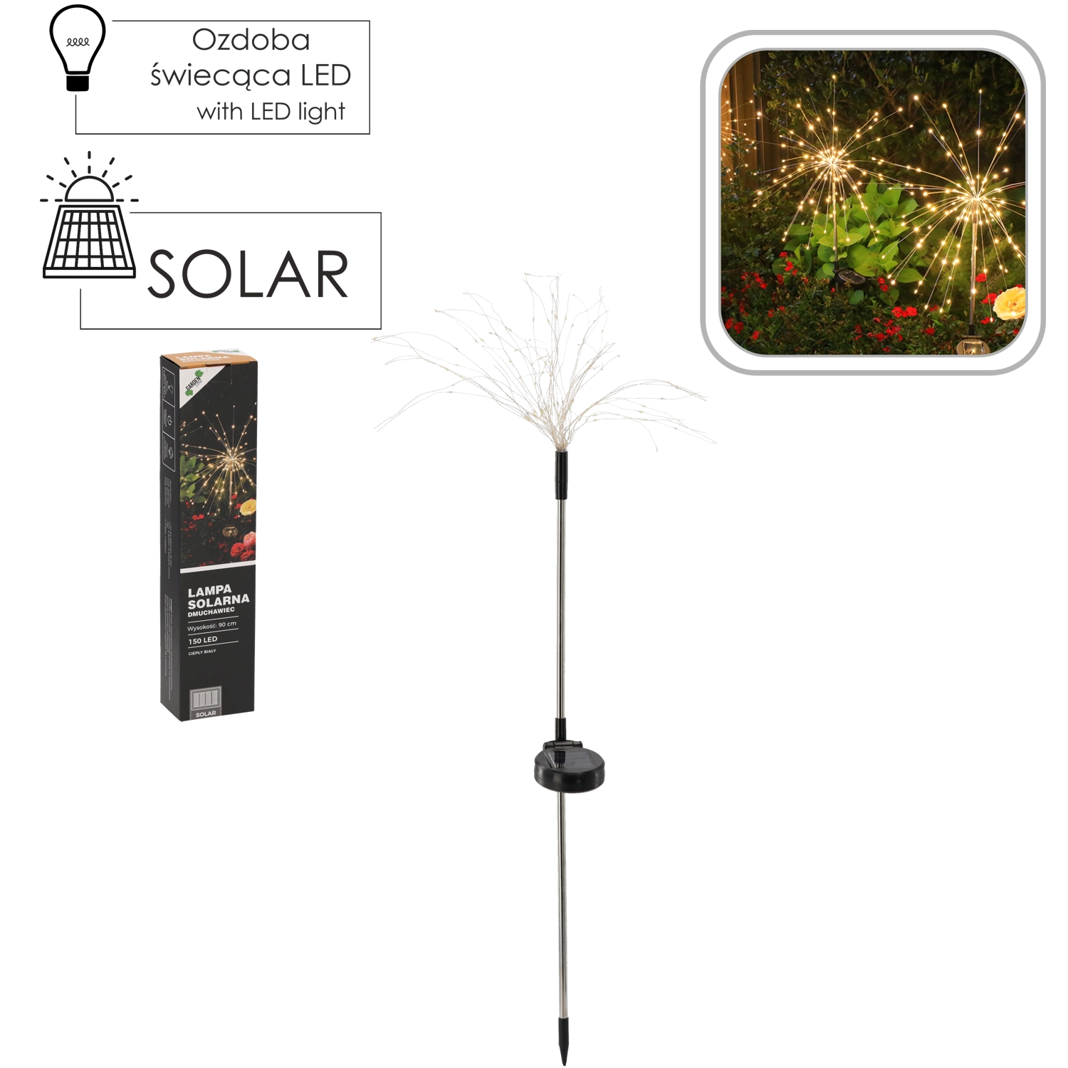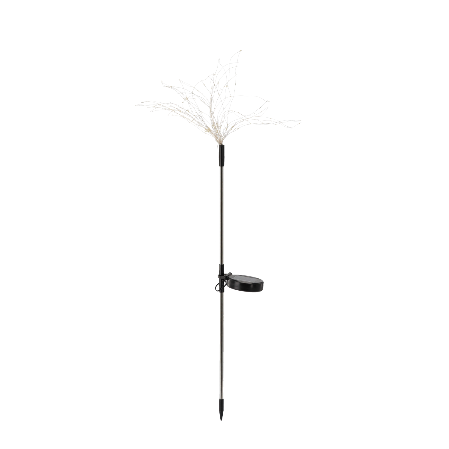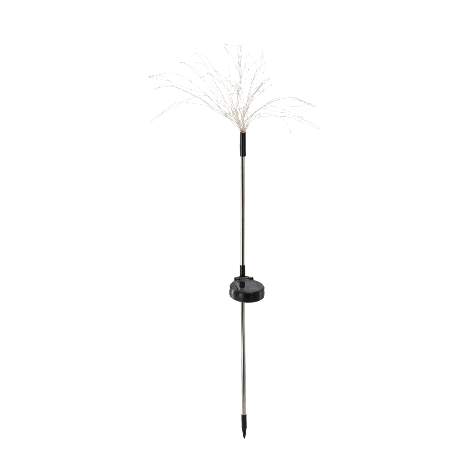 Elegant solcelledrevet havelygte i mælkebøtte-stil oplyser stier, terrasser og bede med et behageligt varmt hvidt lys. Med 150 LED på en kobbertråd skaber den en stjernespredt “starburst”-effekt. Kabelfri, drevet af solen, med IP44 til udendørs brug.