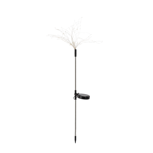 Med 150 varme hvide LED på kobbertråd opstår et blødt, stjernespredt “starburst”-lys, der gør sig perfekt langs stier, ved terrassen, verandaen eller i prydbede og ved vandområder. Beskyttelsesklassen IP44 sikrer modstandsdygtighed over for vejrpåvirkninger.