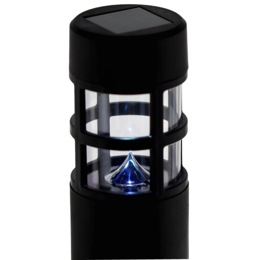 Den amorfe solcelle på 39 × 39 mm oplader det indbyggede AAA-batteri (1,2 V, 100 mAh), så lampen tænder automatisk efter mørkets frembrud uden behov for elnettet.