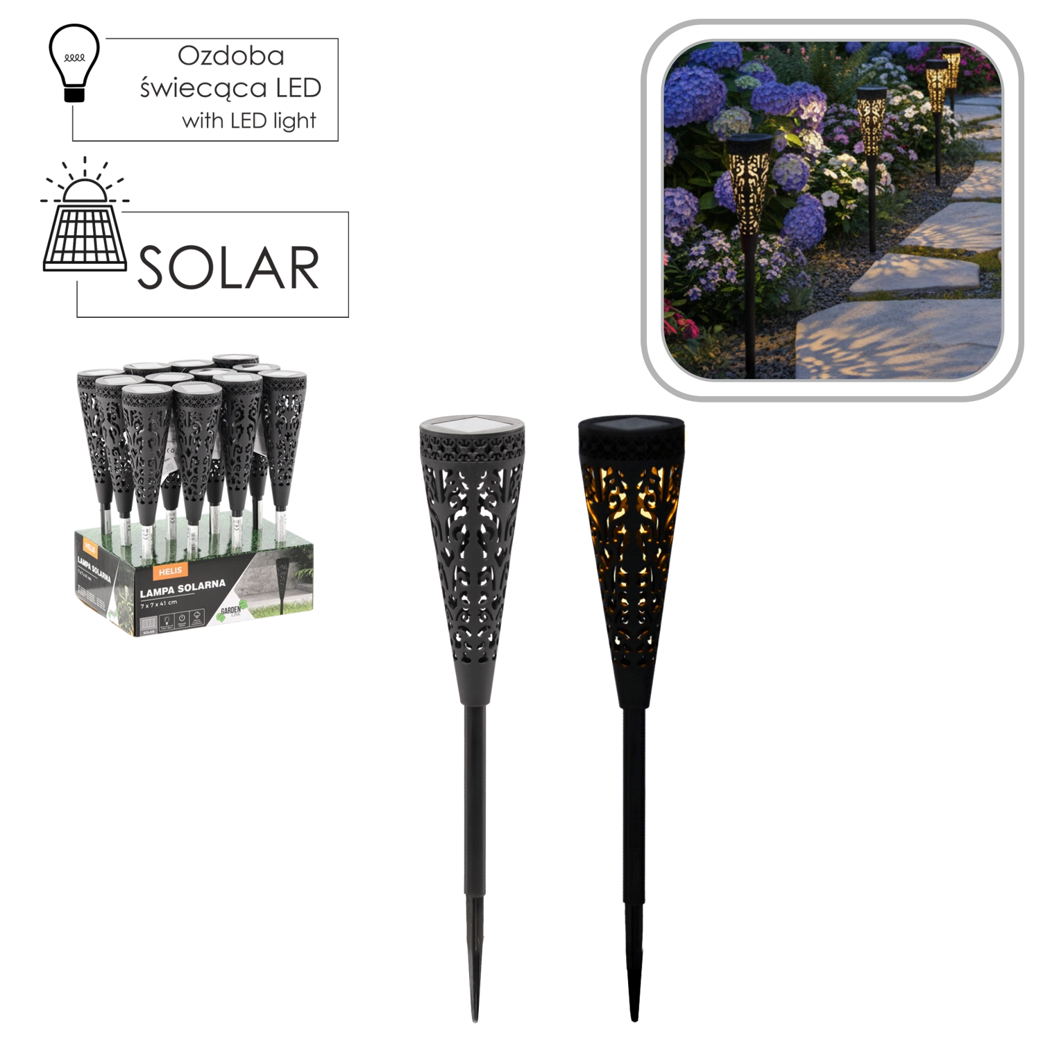 Solcelle-have lampen HELIS kombinerer funktionel orienteringsbelysning med et æstetisk udtryk. Det indbyggede amorfe solpanel oplader batteriet i dagtimerne, som om aftenen driver 1× varm hvid LED. Huset i robust plast i sort og IP44-klassificeringen sikrer driftssikkerhed i udendørs miljøer.