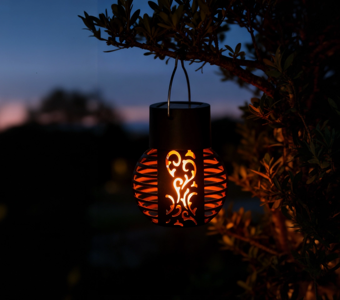 De dekorative perforeringer kaster stemningsfulde skygger og skaber en hyggelig aftenatmosfære på verandaen, pergolaen eller langs havegangen.