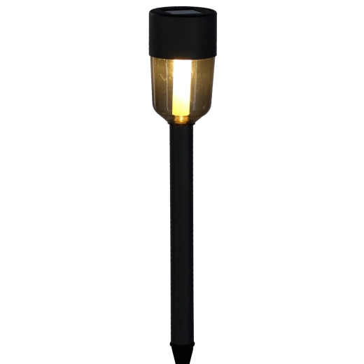 IP44-beskyttelse sikrer mod vejrpåvirkning. Monteringen er hurtig takket være et plast-jordspyd – det er blot at stikke det i jorden.
