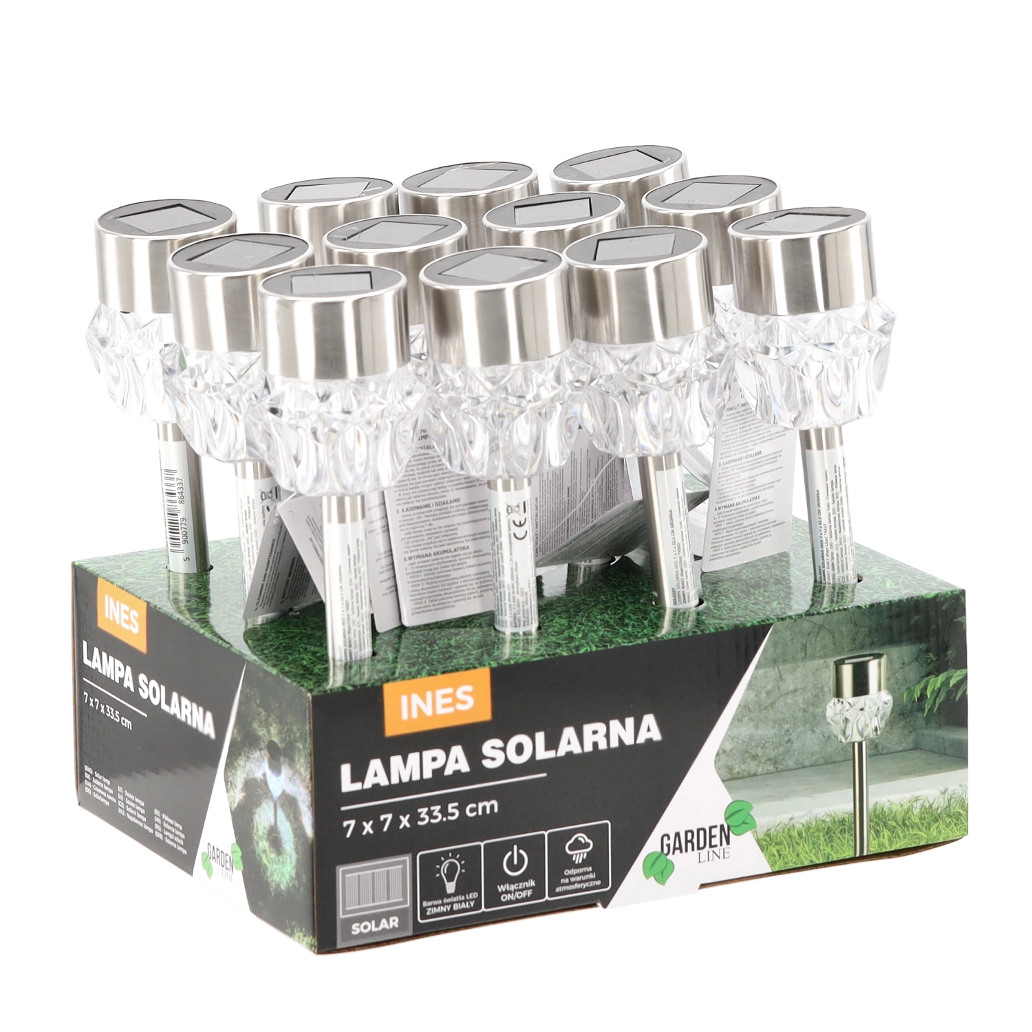 Solcellelampen INES er en stilfuld og energibesparende belysning til haven og omkring huset. Det integrerede amorfe solcellepanel oplader batteriet i dagtimerne, og om aftenen tænder lyset automatisk og skaber en klar, kold hvid effekt, ideel til orientering langs gangstier og indkørsler.