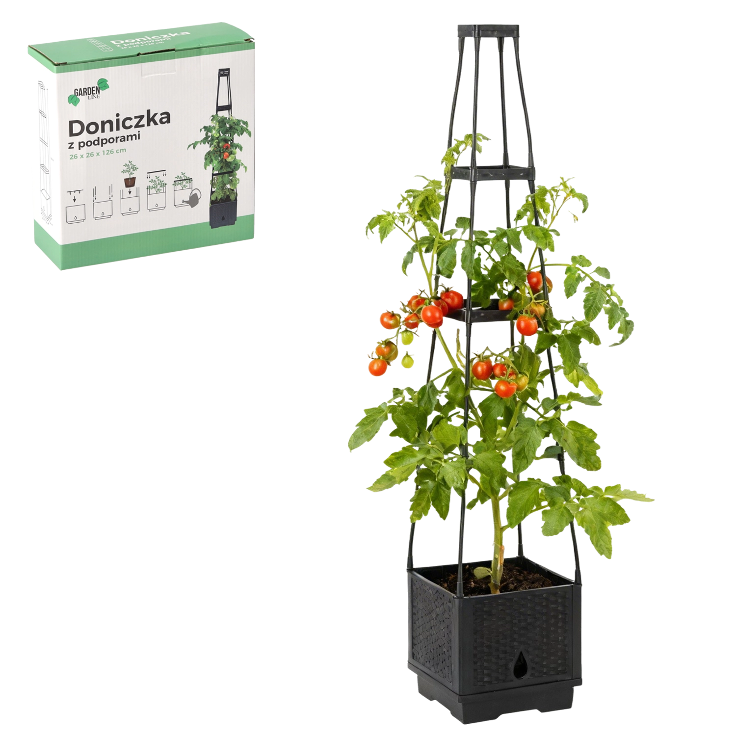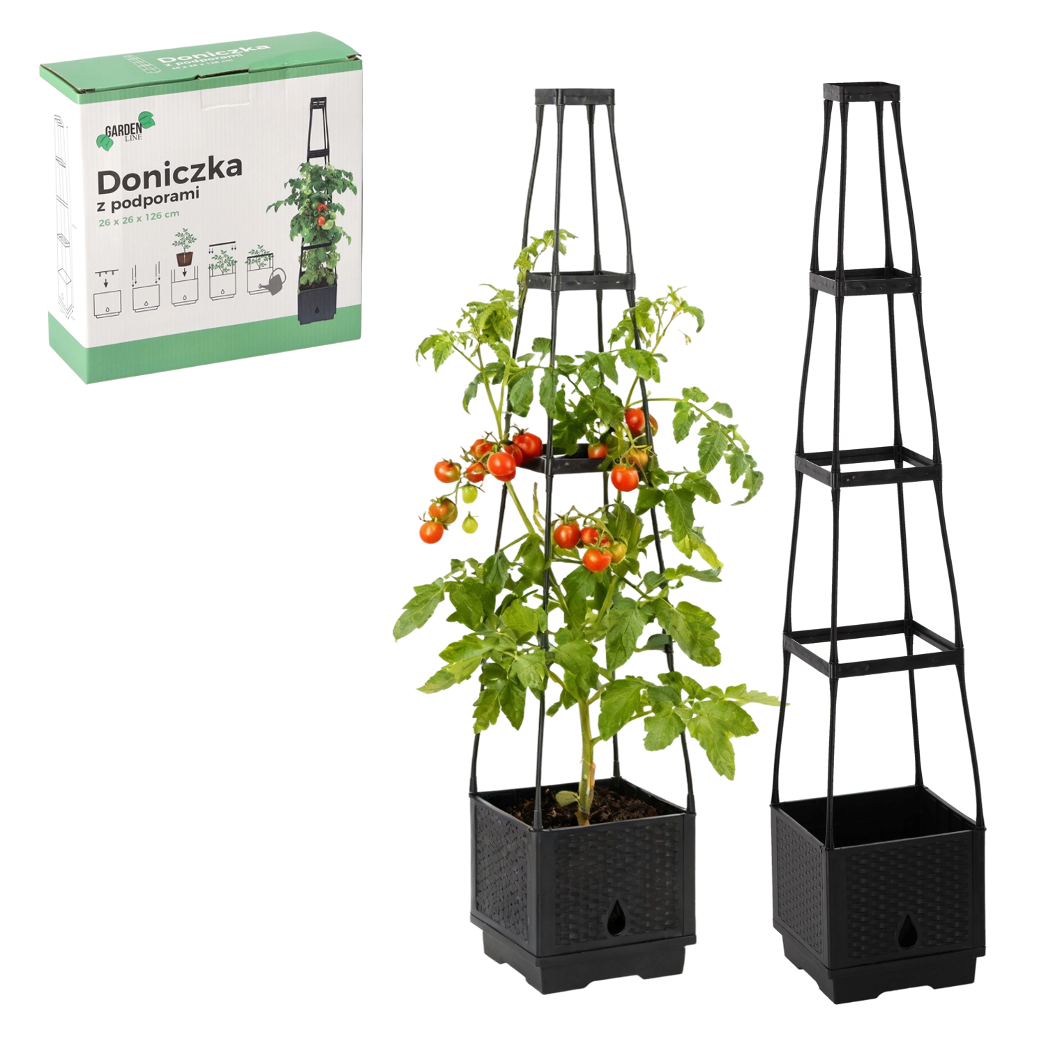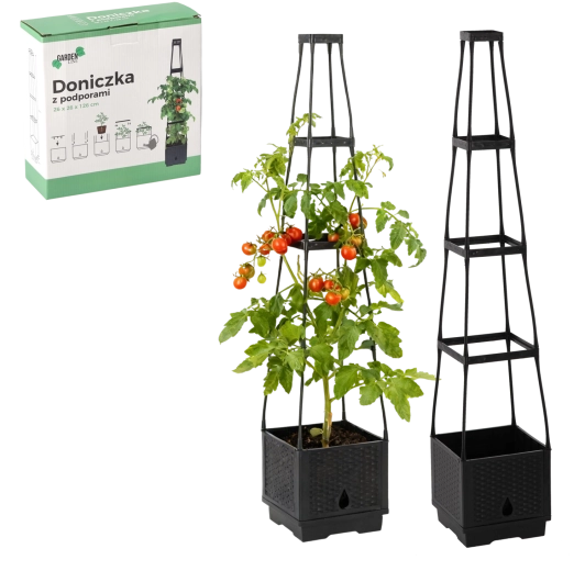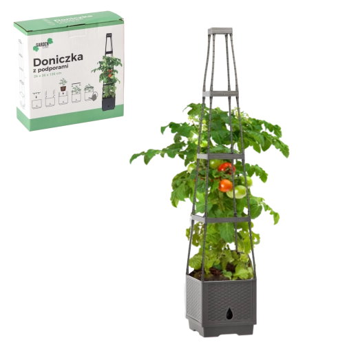 Praktisk blomsterpotte med integrerede støtter er ideel til klatreplanter. Den giver dem stabil støtte, fremmer sund vækst og klatring og fungerer samtidig som et dekorativt element til have, terrasse og altan.
