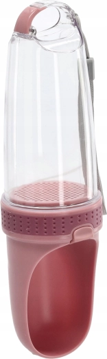 Denne smarte rejseflaske kombinerer vandbeholder og foldbar drikkeskål i ét. Med et enkelt tryk på knappen fylder du renden med vand, så hunden drikker komfortabelt og hygiejnisk uden behov for ekstra skål. Takket være sikker, ikke‑toksisk plast er den velegnet til daglig brug og nem vedligeholdelse.