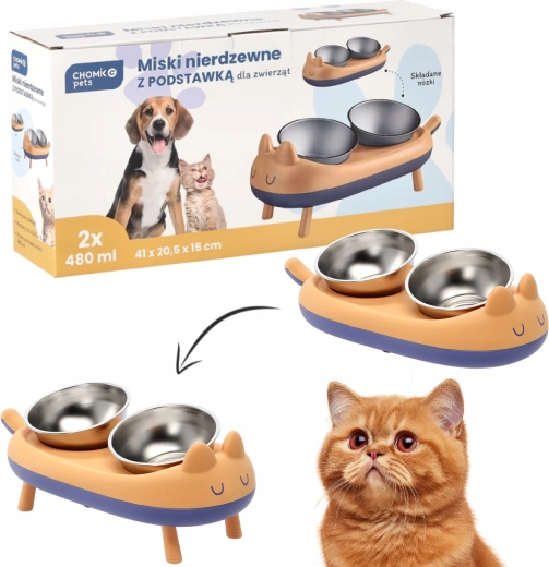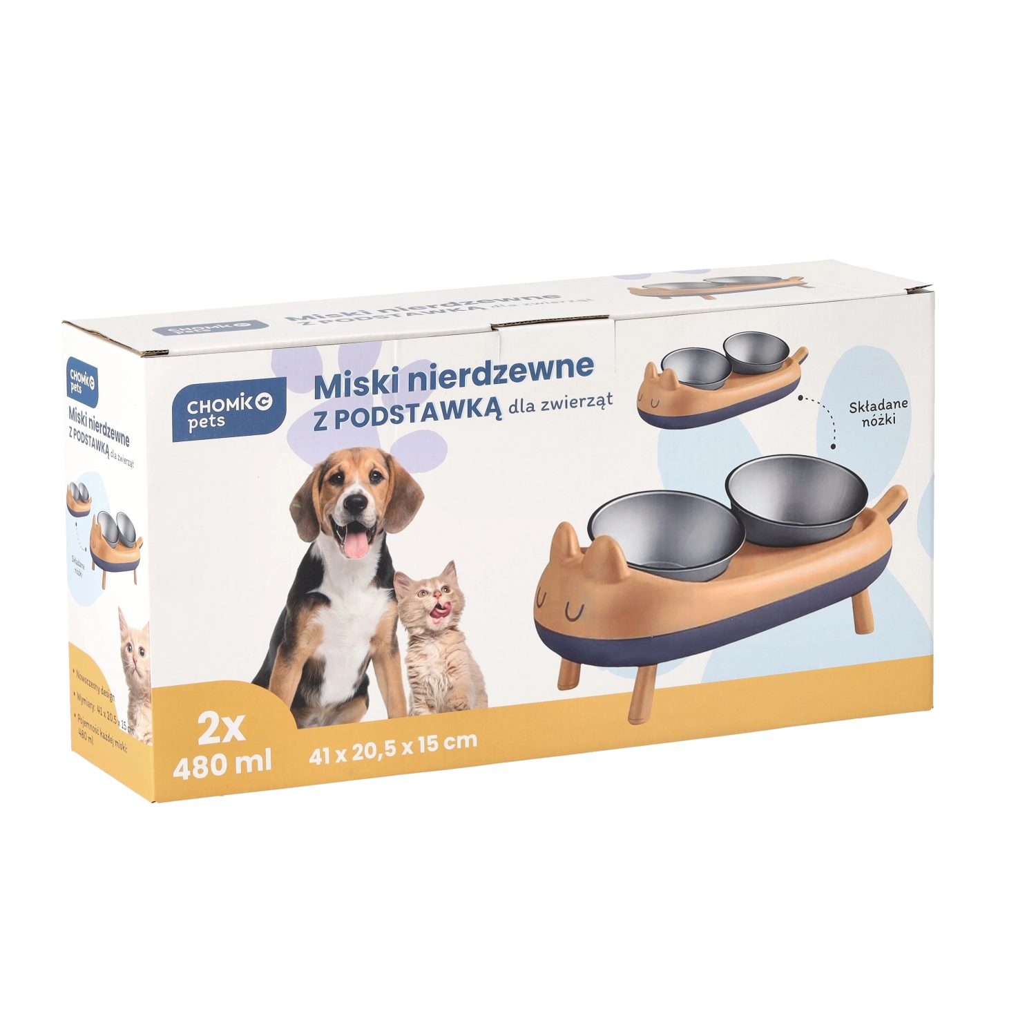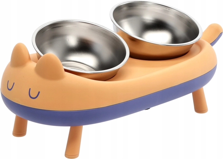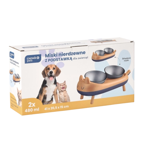 Praktisk dobbelt skål på solidt stativ til hunde og katte giver behagelig fodring og vanding. Skåle i rustfrit stål er hygiejniske og nemme at rengøre, den forhøjede konstruktion understøtter en sund kropsholdning, og den stabile base forhindrer glidning. Aftagelige skåle gør påfyldning og vedligeholdelse nem, og det elegante design passer ind i ethvert interiør.