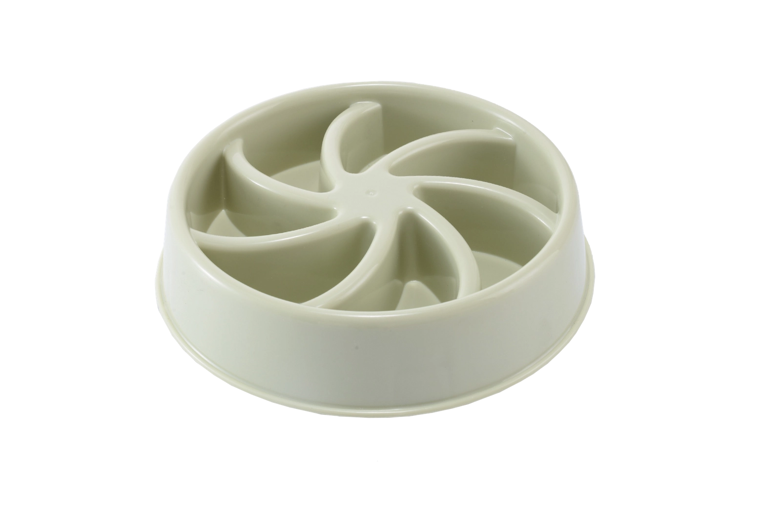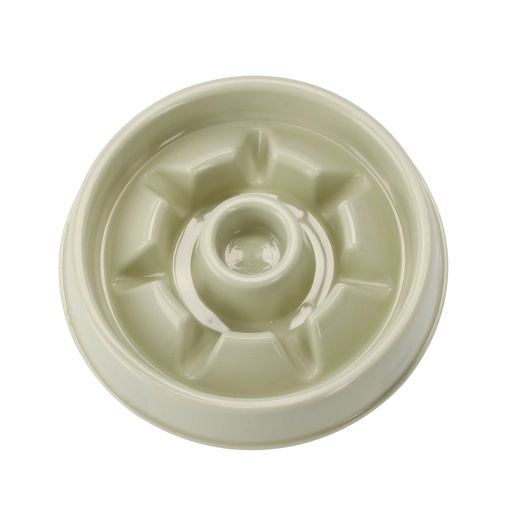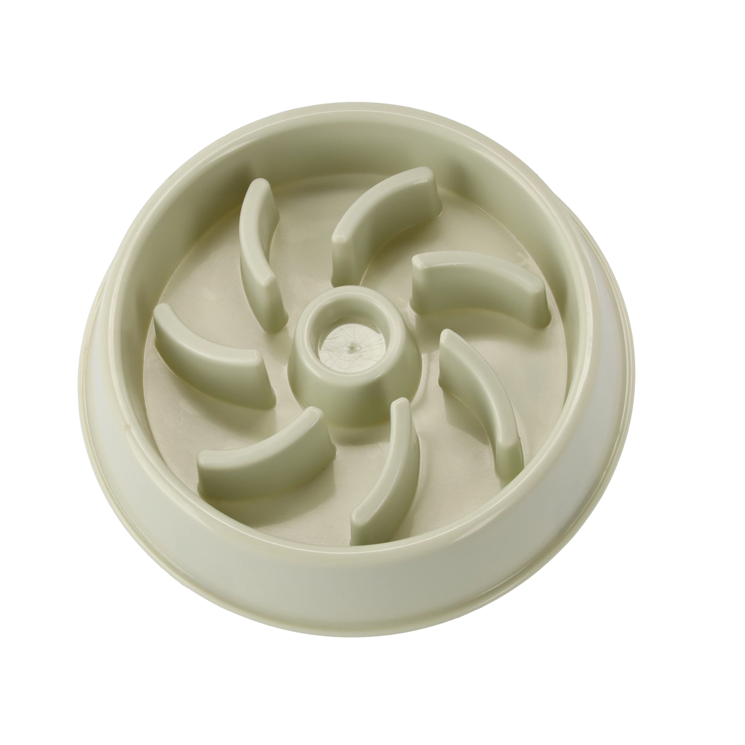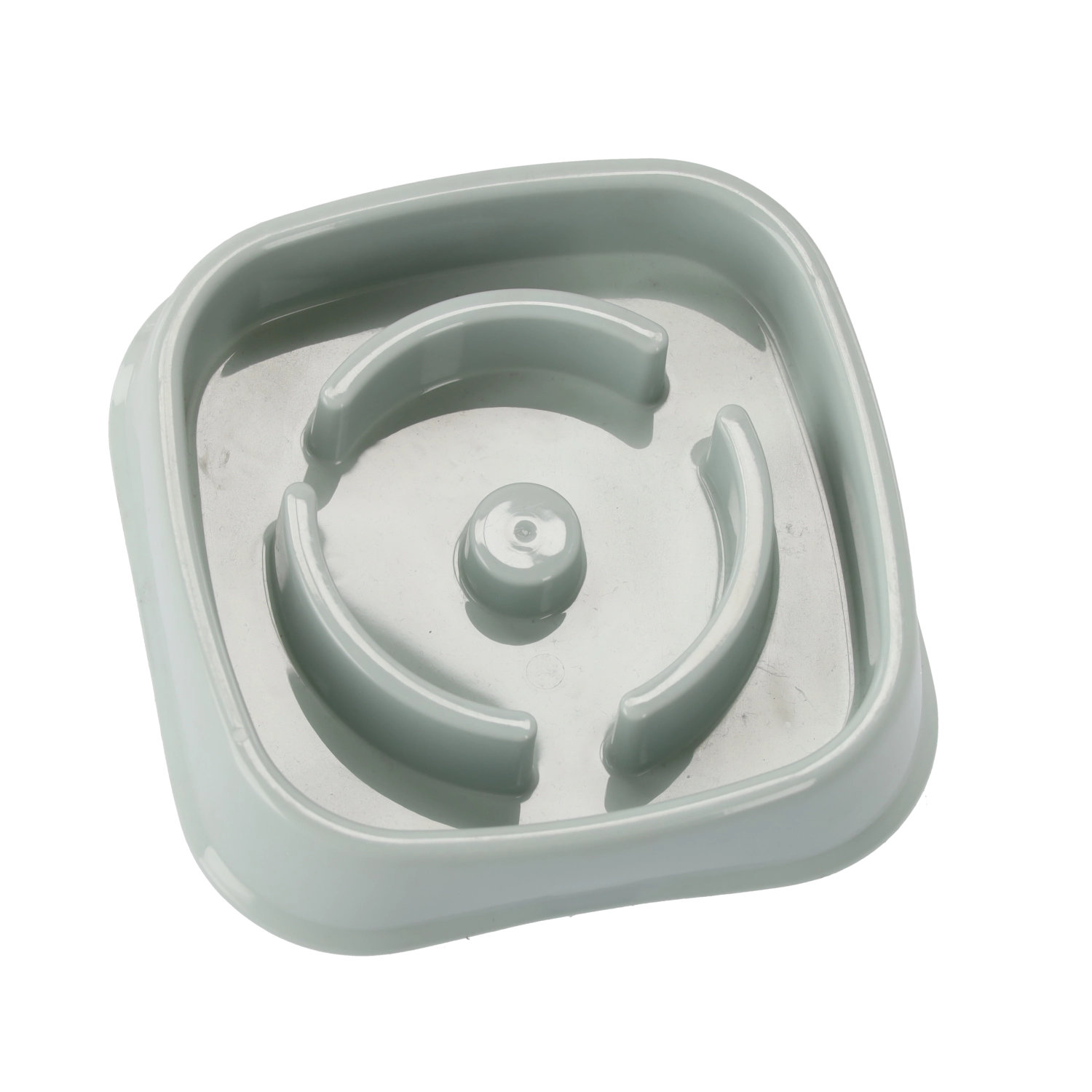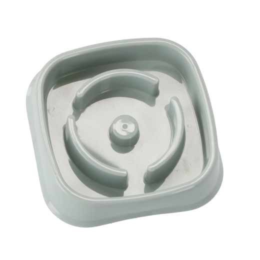 Den praktiske skål til hunde og katte er designet til naturligt at sænke spisetempoet. Indvendig labyrint eller spiraler deler foderet i mindre lommer, så kæledyret skal “jage” maden og derfor spiser roligere og langsommere. Det bidrager til korrekt fordøjelse, hjælper med at reducere overdreven luftslugning og mindsker risikoen for, at maden sætter sig fast.