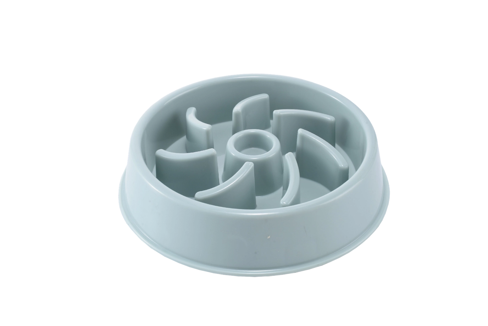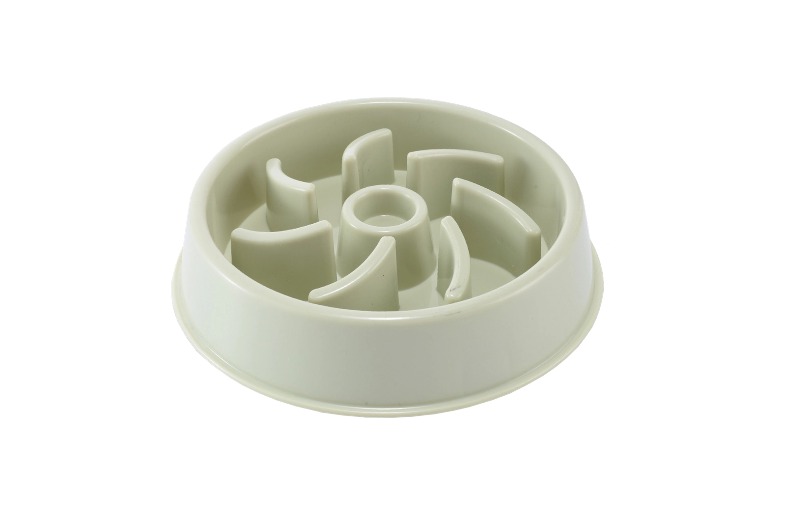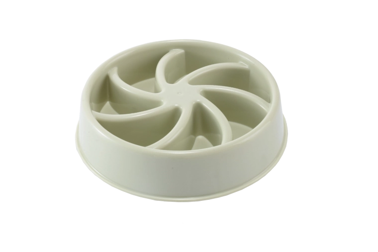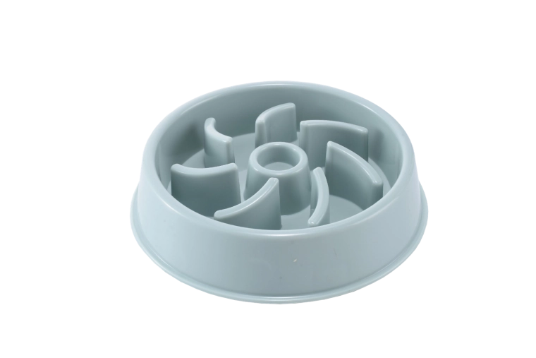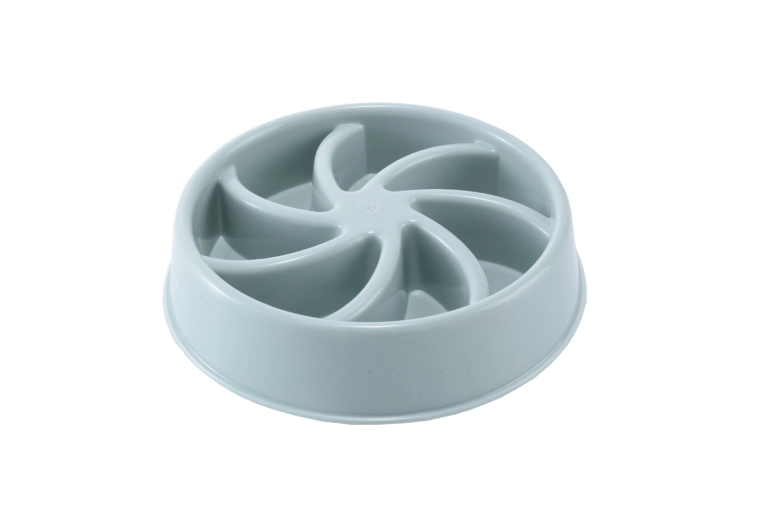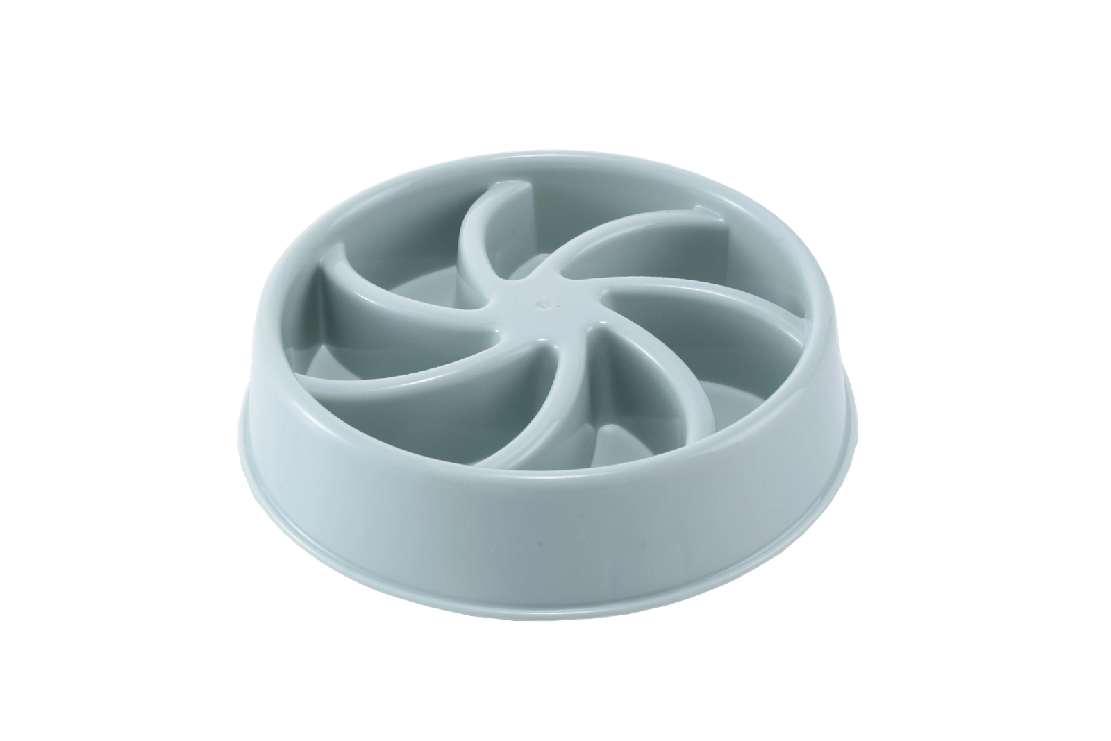 Den praktiske skål til hunde og katte er designet til naturligt at sænke spisetempoet. Indvendig labyrint eller spiraler deler foderet i mindre lommer, så kæledyret skal “jage” maden og derfor spiser roligere og langsommere. Det bidrager til korrekt fordøjelse, hjælper med at reducere overdreven luftslugning og mindsker risikoen for, at maden sætter sig fast.