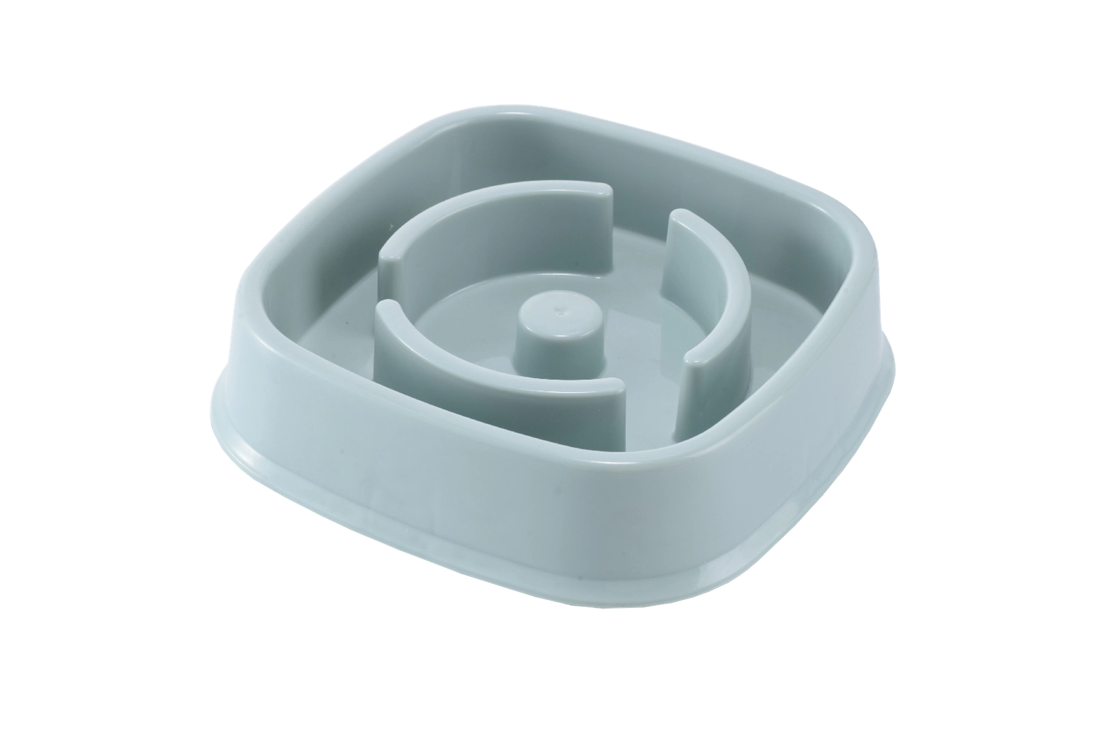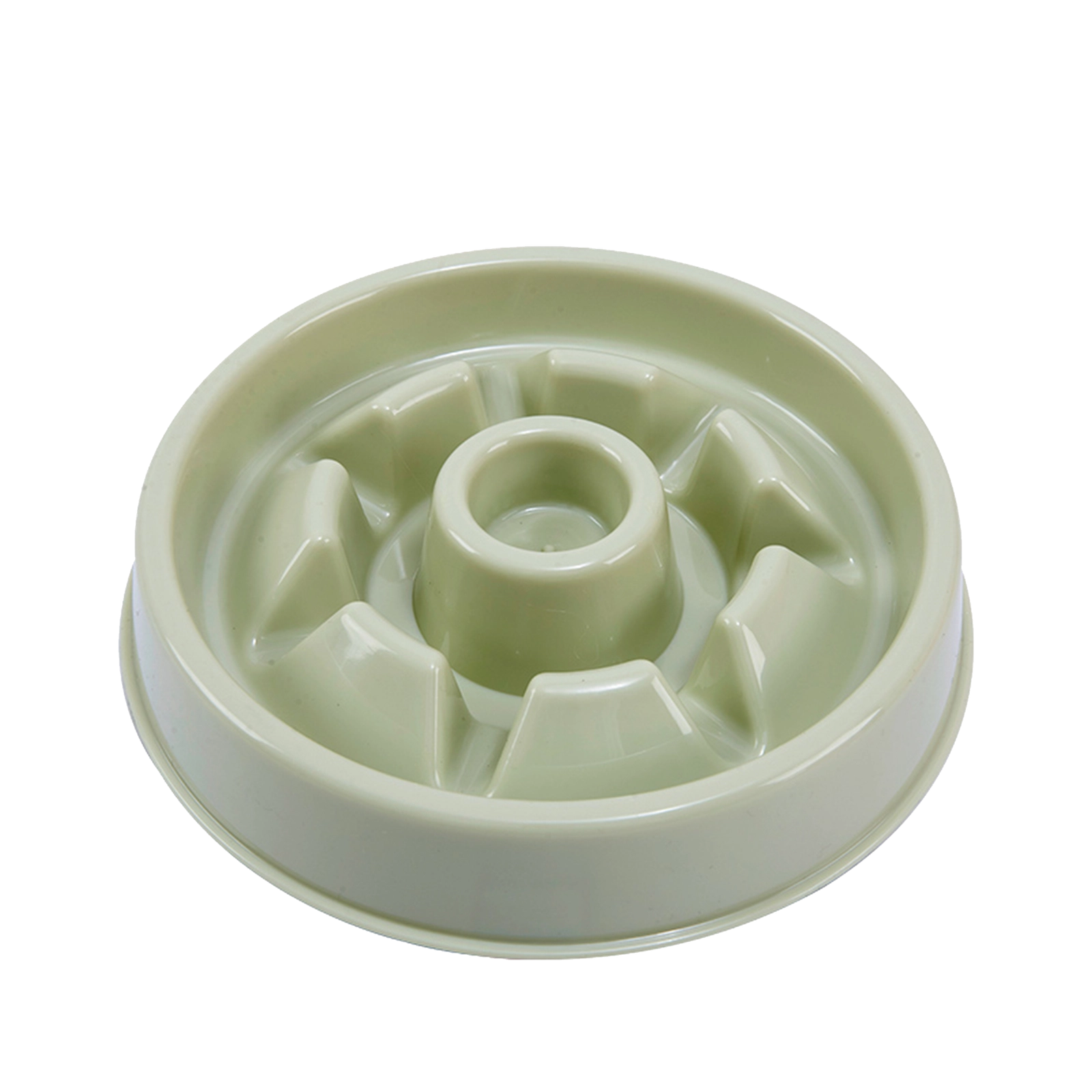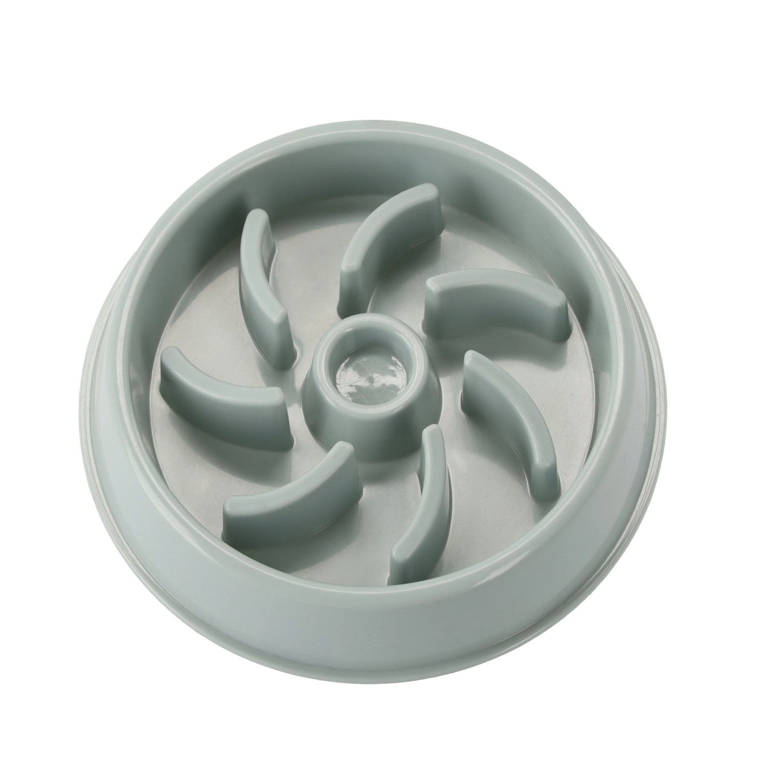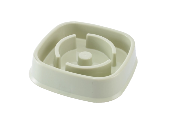 Den praktiske skål til hunde og katte er designet til naturligt at sænke spisetempoet. Indvendig labyrint eller spiraler deler foderet i mindre lommer, så kæledyret skal “jage” maden og derfor spiser roligere og langsommere. Det bidrager til korrekt fordøjelse, hjælper med at reducere overdreven luftslugning og mindsker risikoen for, at maden sætter sig fast.