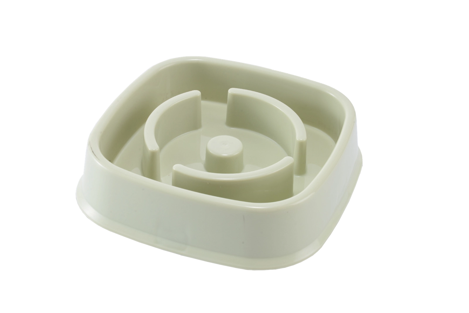 Indvendige forhindringer danner en labyrint, som deler foderet i mindre portioner. Hund eller kat spiser langsommere, sluger mindre og fordøjer bedre.