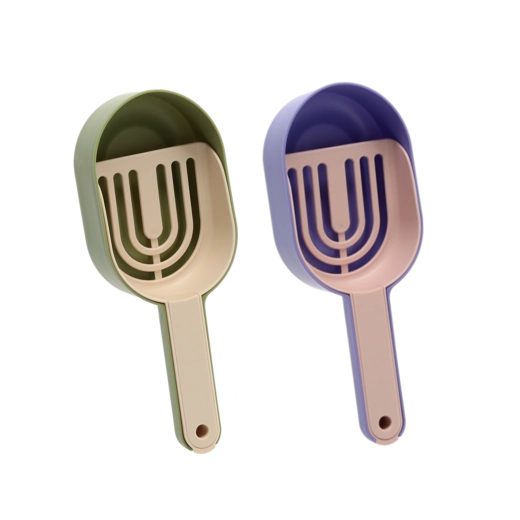 Praktisk kattesandsskovl 2-i-1 med si til hurtig adskillelse af ren sand fra urenheder. Ergonomisk håndtag gør den nem at bruge, holdbar plast sikrer lang levetid og nem rengøring. Farven sendes tilfældigt.