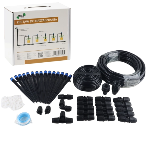 Dette komplette drypvandingssæt er ideelt til haver, drivhuse, højbede og altankasser. Det muliggør præcis vandedosering via justerbare dryppere direkte til planterne, hvilket minimerer fordampning og spild. Nem tilslutning til hane og modulære komponenter lader dig skabe en skræddersyet vanding.