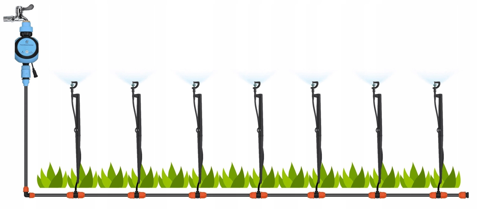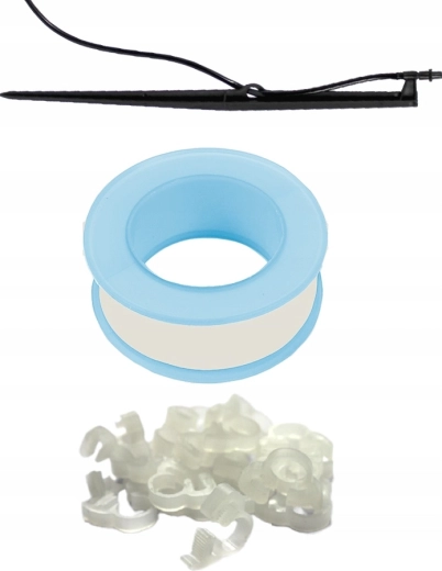 - 1× teflontape, 10× klemme/klips, 1× jordspyd til mikrosprinkler