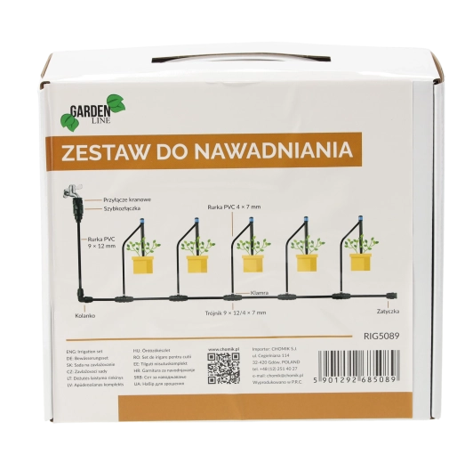 Praktisk sæt til drypvanding, som sikrer jævn og vandbesparende vanding af bede, drivhuse og hængende blomsterkrukker. Nem tilslutning til vandhane, hurtig installation og justerbar gennemstrømning på drypperne for præcis dosering direkte ved rødderne.