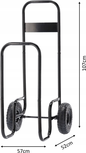 Praktisk vogn til brænde med en bæreevne på 60 kg, som gør det nemt at transportere brændeknuder fra brændeskuret til ovnen eller pejsen. Takket være den robuste stålkonstruktion, de store hjul til let bevægelse selv på ujævnt underlag og det beskyttende overtræk mod støv og fugt er transporten af brænde hurtig, bekvem og ren.