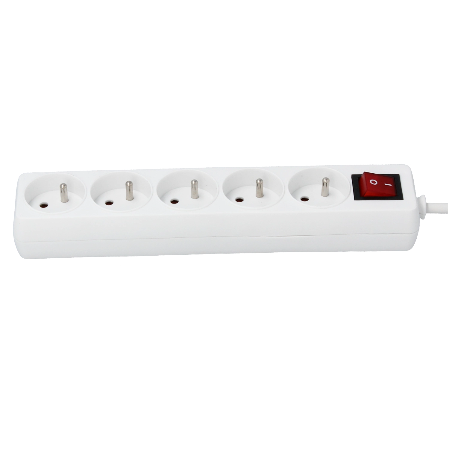 Denne hvide strømskinne er ideel til hjem, kontor og værksted. Den tilbyder 5 Schuko-stik, robust udførelse i holdbar plast og en hovedafbryder, der afbryder alle tilsluttede enheder med ét tryk. Kobberleder 3×1,0 mm² sikrer pålidelig strømoverførsel og lang levetid.