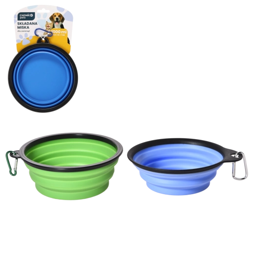 Praktisk sammenfoldelig skål med en kapacitet på 1000 ml – ideel til rejser, gåture og camping. Takket være den kompakte, sammenfoldelige konstruktion fylder den minimalt, er let at bære og nem at vedligeholde. Holdbart, let materiale sikrer lang levetid, og karabinhagen gør det nemt at fastgøre den til rygsæk, bælte eller line. Velegnet til vand og foder til mellemstore kæledyr. Farven leveres i mix afhængigt af lagerstatus.