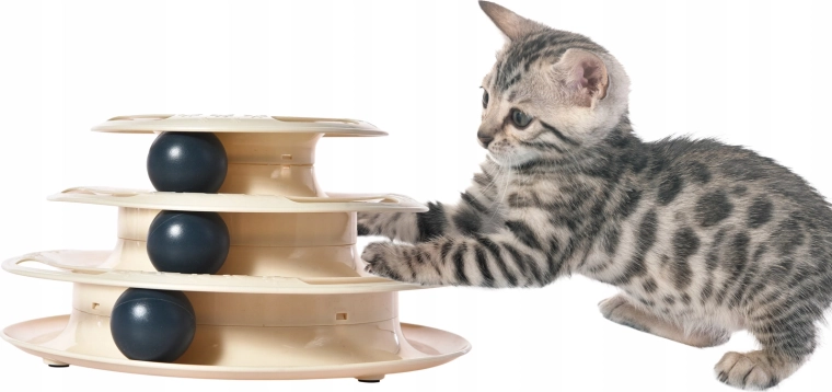 Forkæl din kat med klog underholdning, der fastholder interessen i timevis. Det tredelte tårn med kugler sætter i gang ved hvert lille puf med poten og motiverer katten til mere jagt. Takket være den glidende bevægelse af kuglerne på de åbne baner stimulerer legetøjet naturlige instinkter og fremmer daglig bevægelse.
