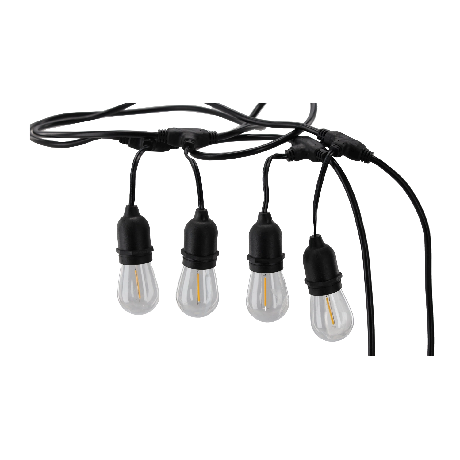 Stærke fatninger og en kraftig kabelkonstruktion sikrer driftssikkerhed selv i skiftende vejr. Ideel til have, terrasse eller pergola.