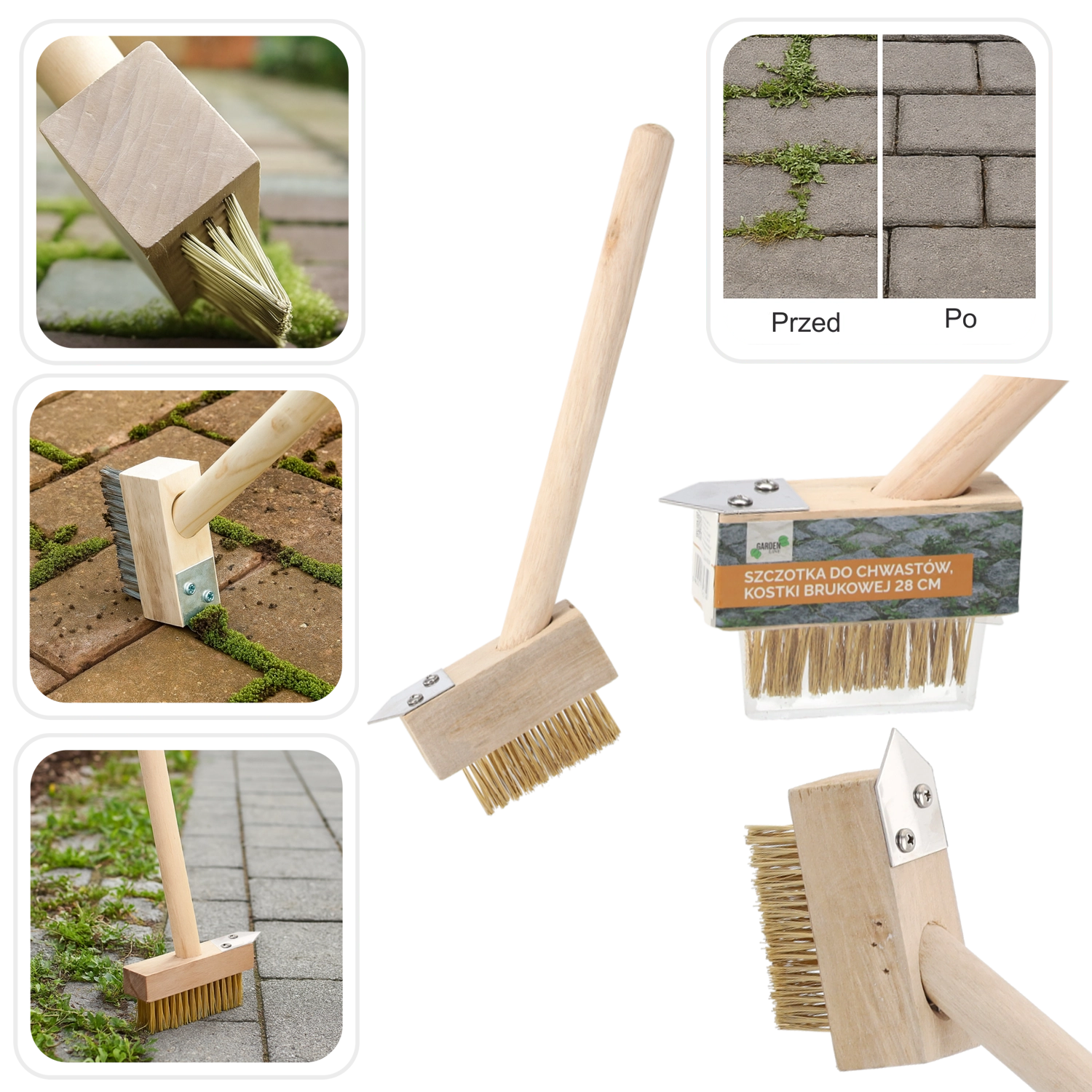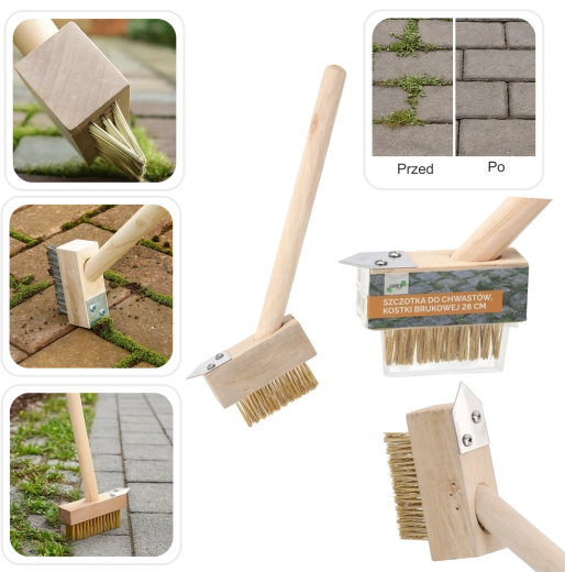Kompakt og robust ukrudts- og fugebørste til belægning med en længde på 28 cm rengør effektivt mellemrum mellem belægningssten og fliser. Kombinerer stive metalbørster med en skraber med stålkant til fjernelse af mos, græs og indgroet snavs. Takket være det ergonomiske træhåndtag er den behagelig at bruge og gør den regelmæssige vedligeholdelse af terrasse, stier og indkørsler lettere.