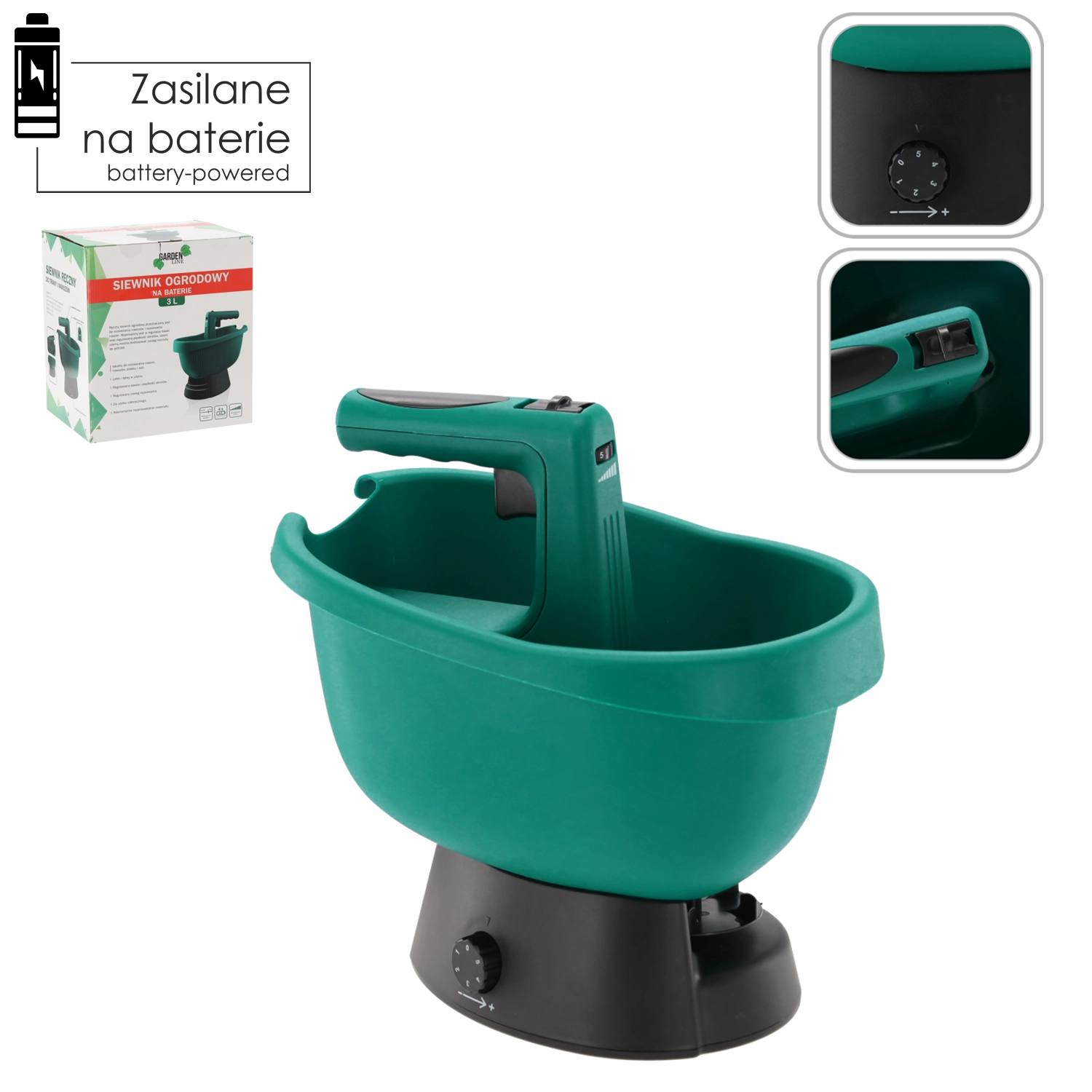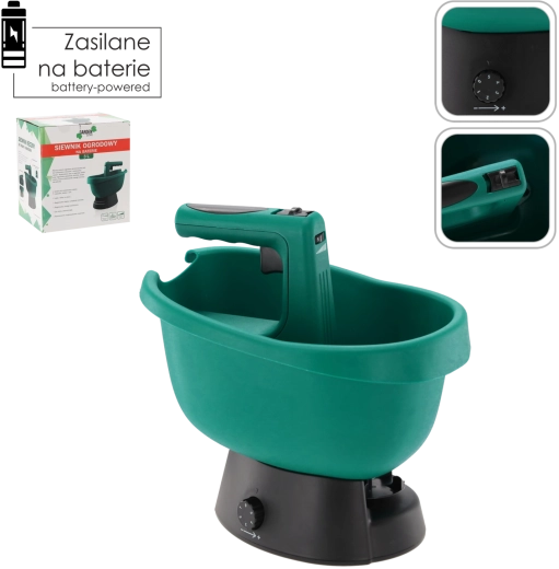 Praktisk håndholdt batterispreder med 3 l beholder, der muliggør jævn udspredning af frø, gødning og strømaterialer uden anstrengelse. Takket være trinløs doseringskontrol og justerbare omdrejninger kan du nemt tilpasse rækkevidden 0,5–2,5 m efter behov. Den lette, holdbare plastkonstruktion og ergonomiske håndtag sikrer behageligt arbejde selv på større arealer.