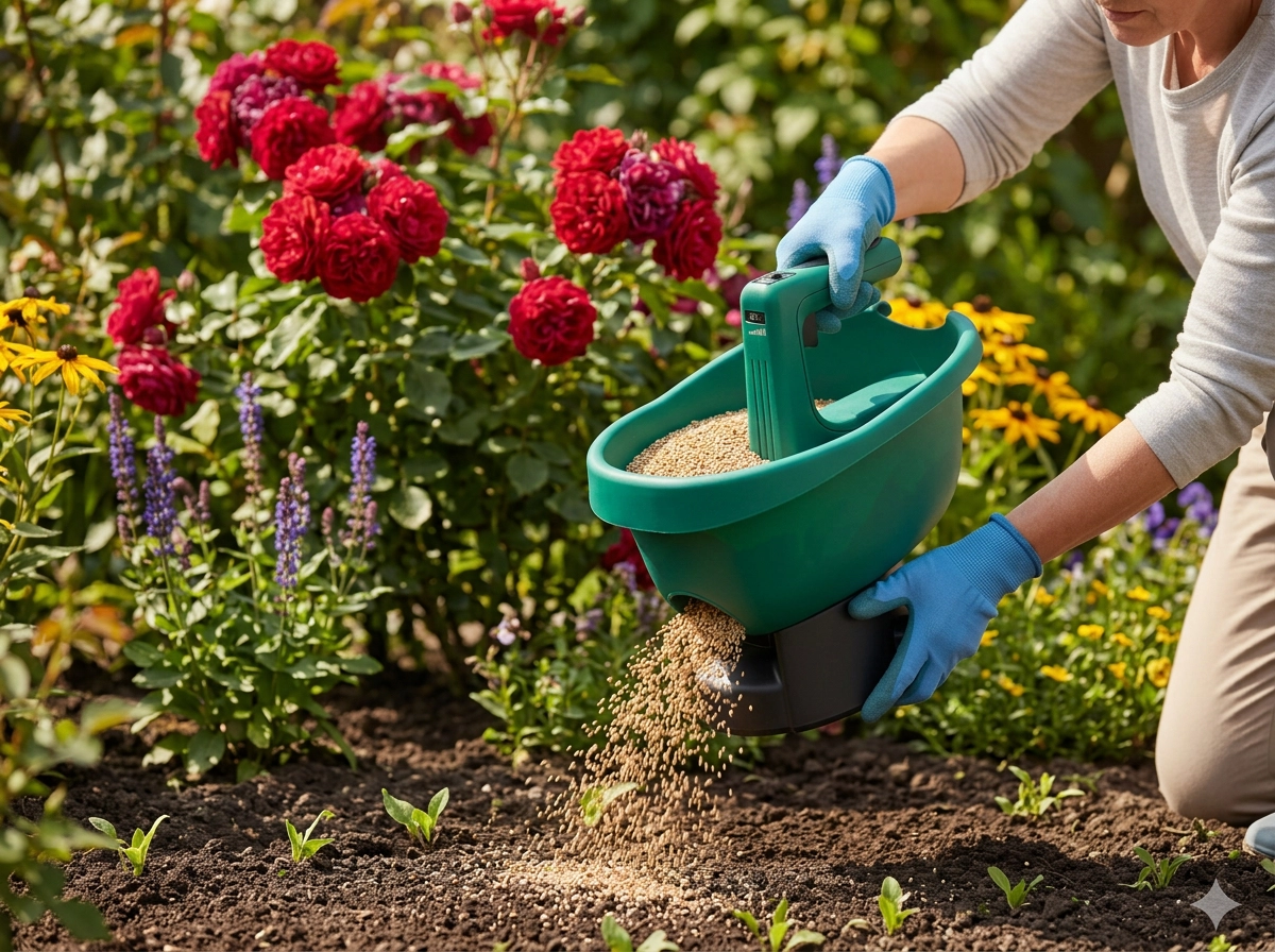 Den intuitive kontrol gør det muligt præcist at indstille doseringsmængde og omdrejningshastighed, så materialet ender præcis, hvor det skal. Det holdbare plastkabinet er let, bærbart og egnet til brug hele sæsonen i bede, på græsplæner og på indkørsler.