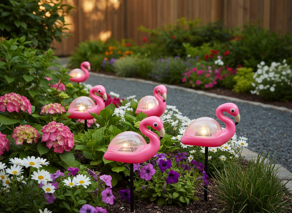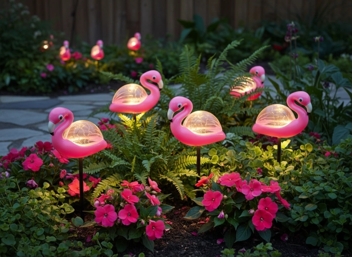 Det dekorative flamingoformede design liver straks bed eller terrasse op og skaber en behagelig stemning om aftenen med blidt, ambient lys.