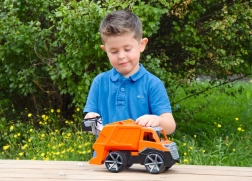 Lena TRUXX 2 skraldebilen er lavet af stærk og sikker plast, som er slagfast og egner sig til leg udendørs.