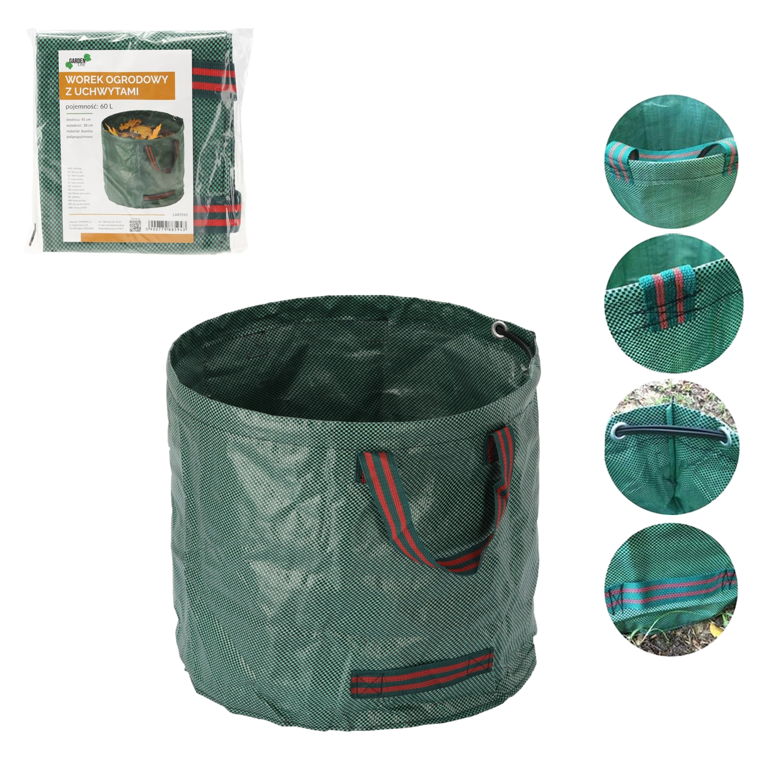 Den holdbare havesæk på 60 l gør havearbejdet lettere året rundt. Det stærke plastfiber, som er modstandsdygtigt over for slid og rivning, håndterer pålideligt våde blade, klippet græs og små grene. Takket være vandafvisning og UV‑bestandighed forbliver materialet stabilt og langtidsholdbart selv ved udendørs brug.