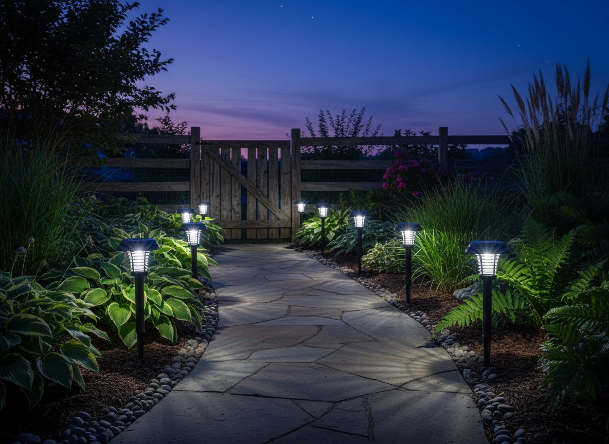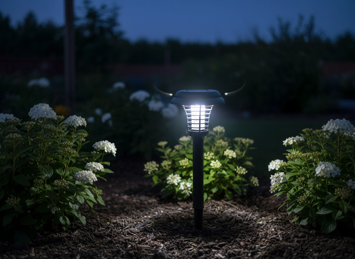 Den hvide LED giver behagelig belysning af stier og blomsterbede, mens den lilla LED effektivt tiltrækker insekter. Færre myg, mere hygge på lune aftener.