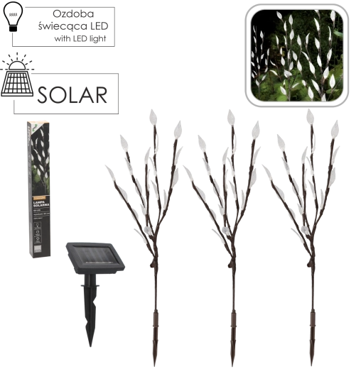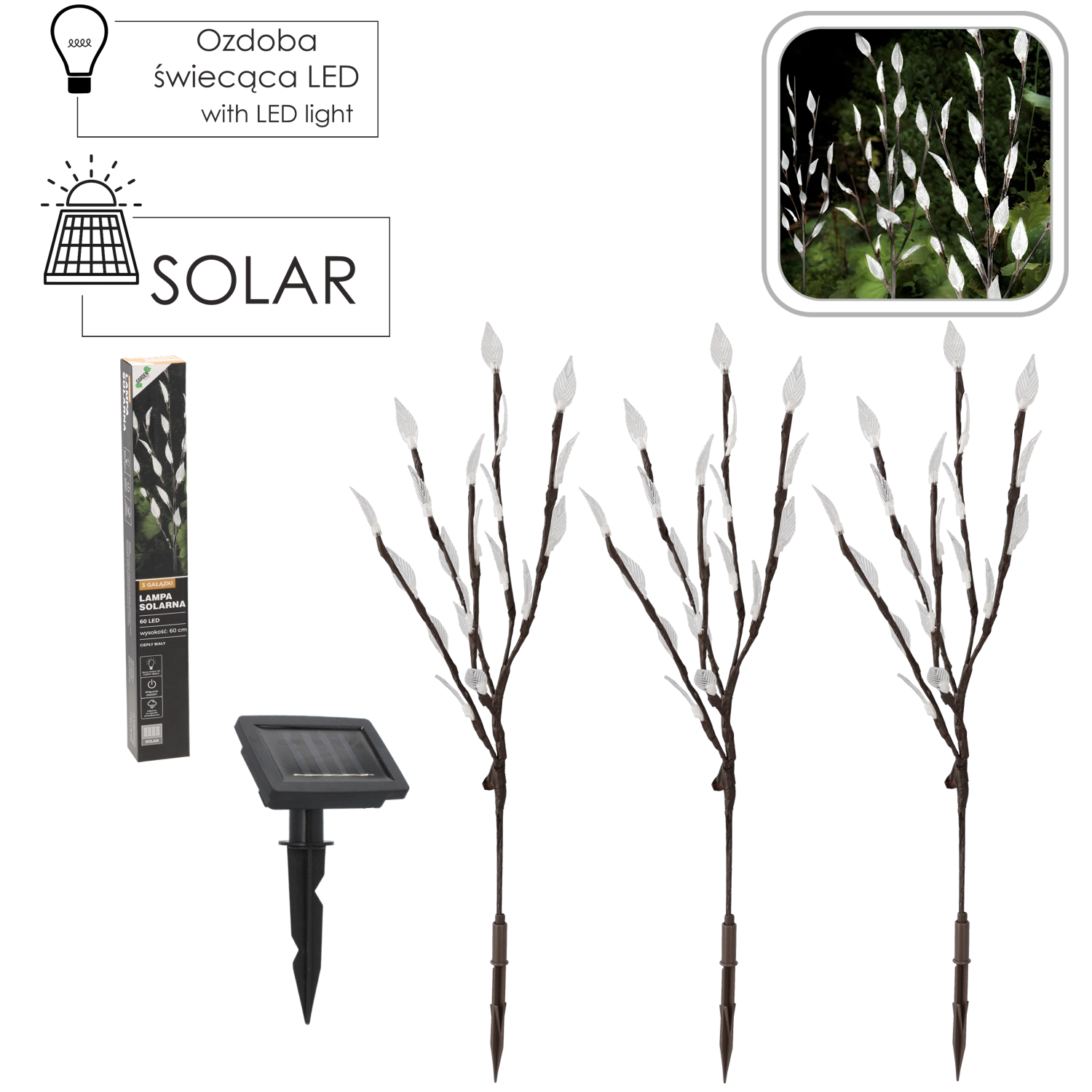 Solcelle havelampe 60 cm med 3 grene, 60 varme hvide LED